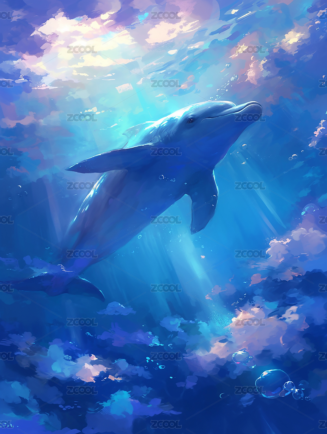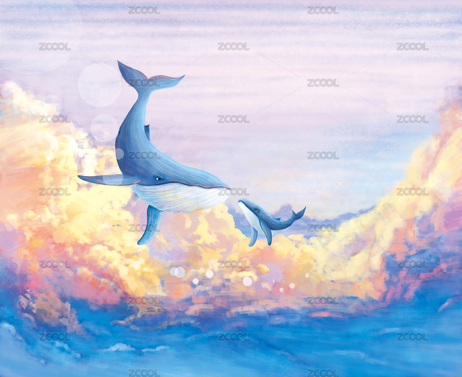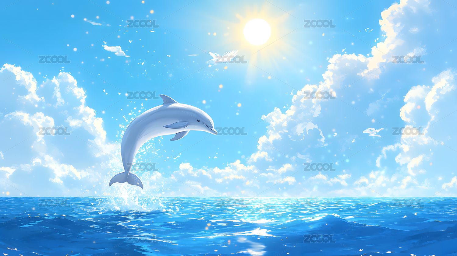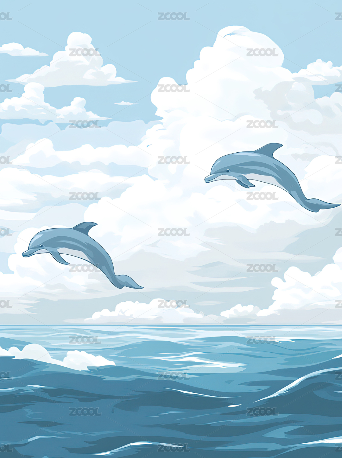 天空,云朵,海洋,海豚,跃出,镜面,云层,云彩,倒影
