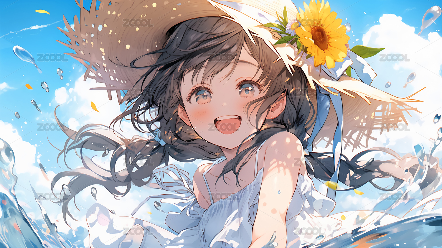夏日微风中的动漫卡通女孩