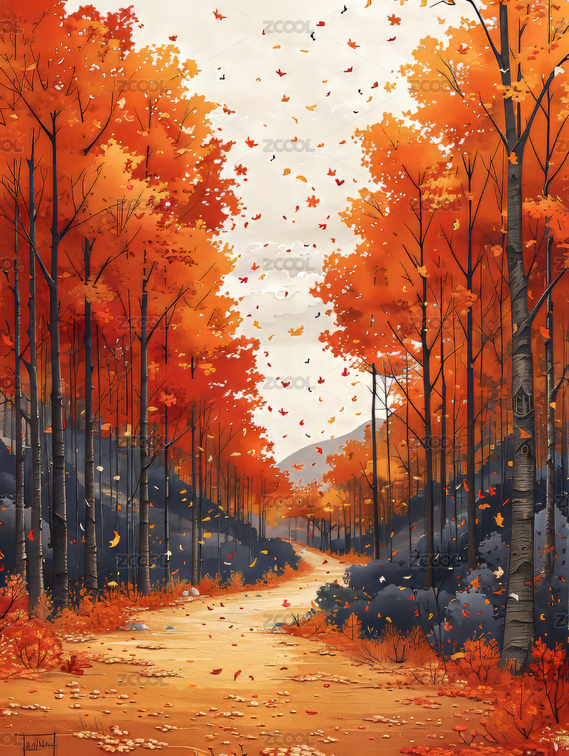 秋季,彩铅,秋景,秋天,艺术,治愈,创意,唯美,金色,黄色