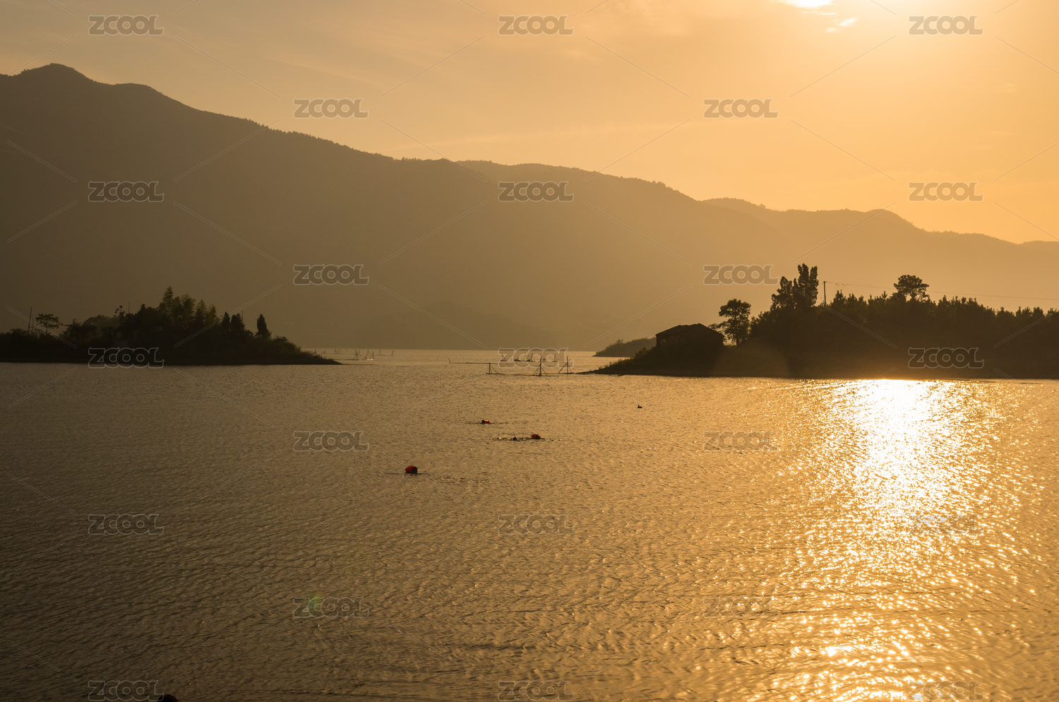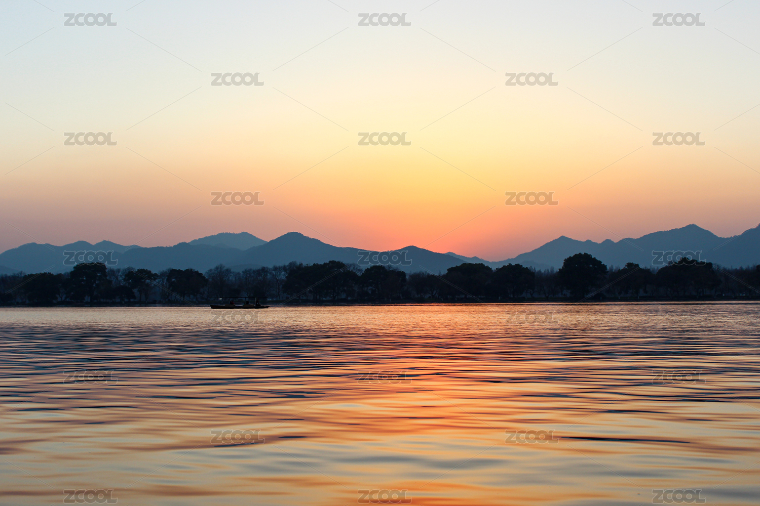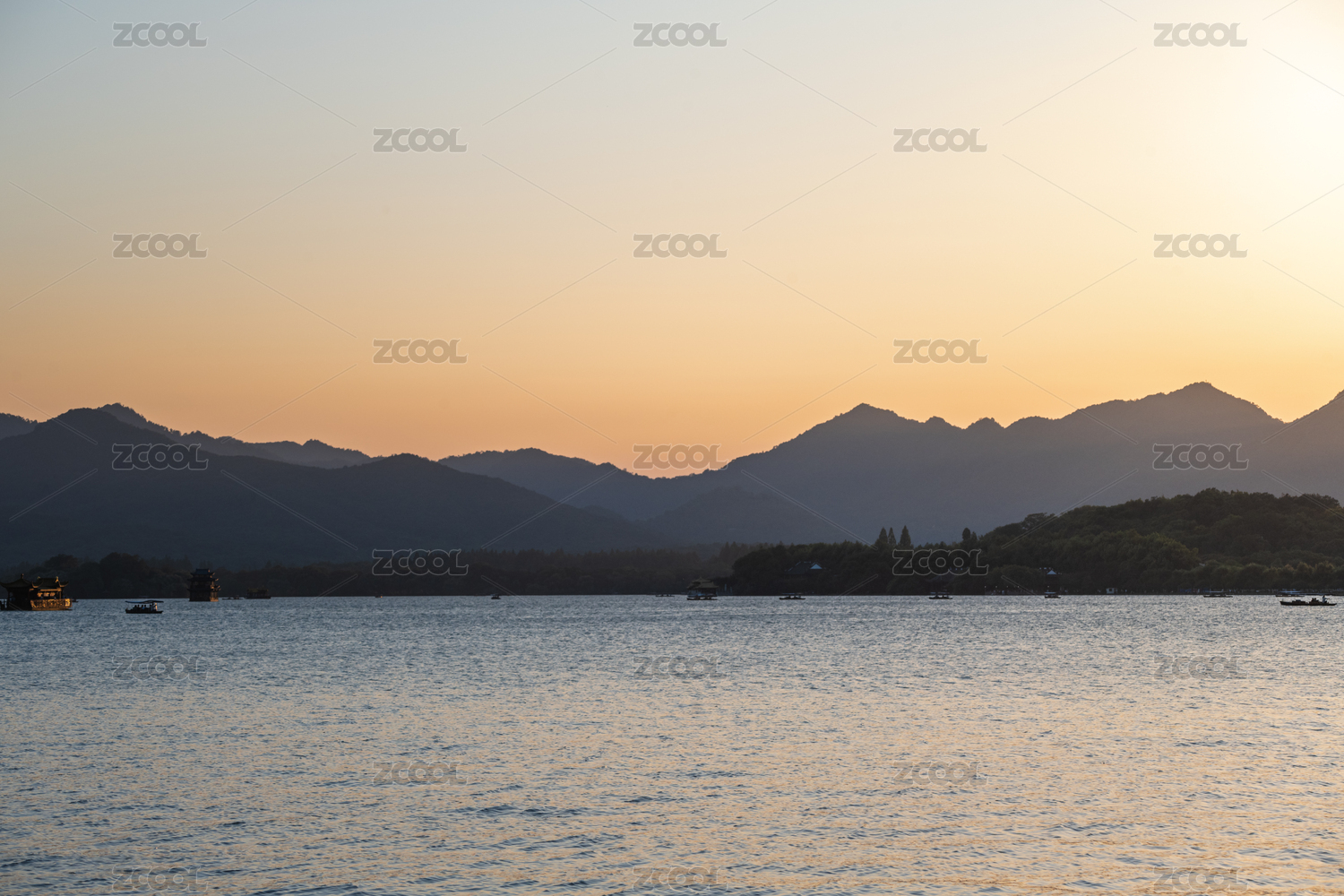 日落下的西湖山水