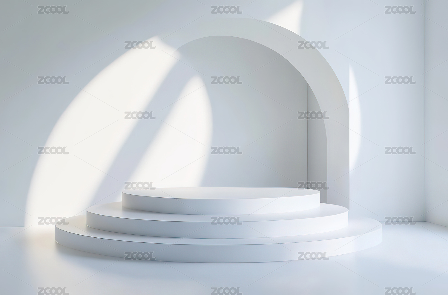 简约白色弧形背景与圆形平台