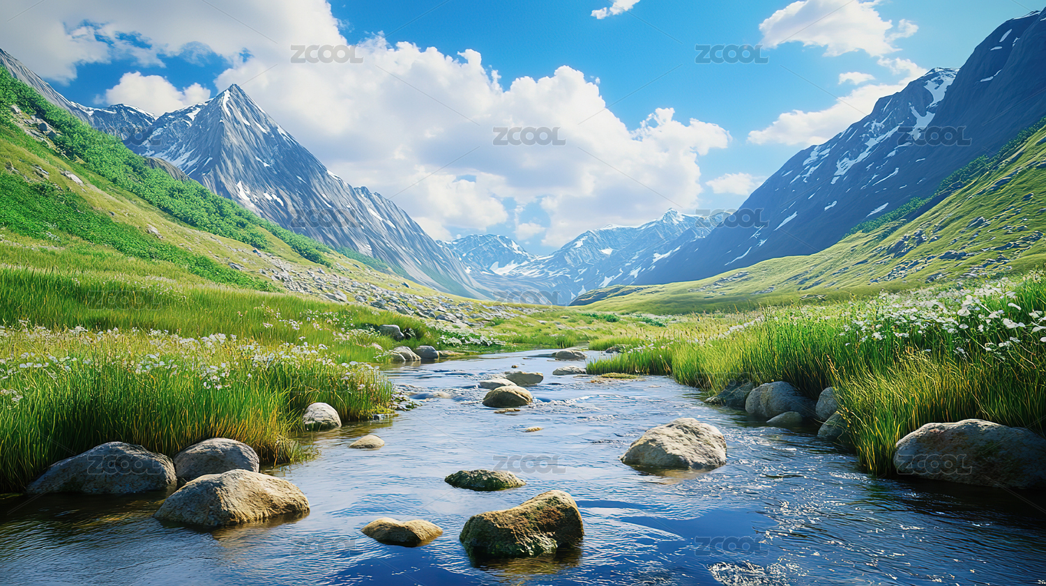 阳光照射下奇幻美丽的山谷的电脑背景壁纸