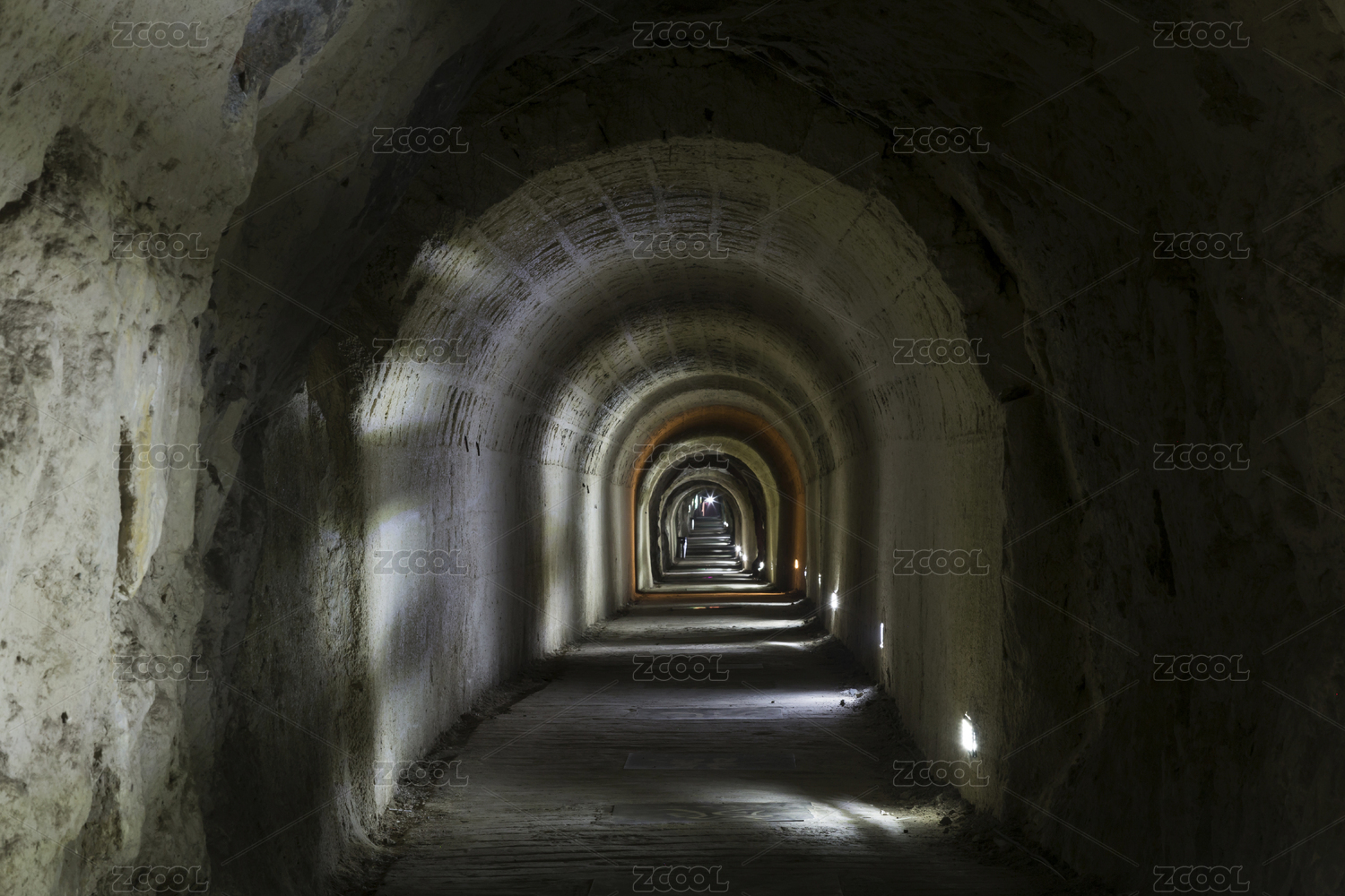 光影交错的隧道空间,摄于鼓浪屿笔山洞