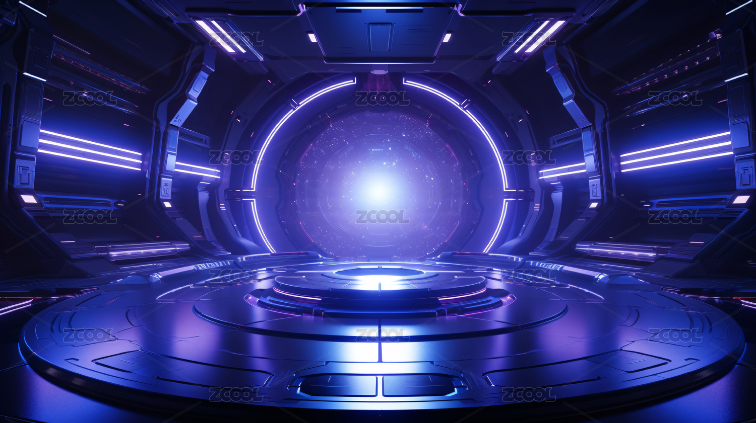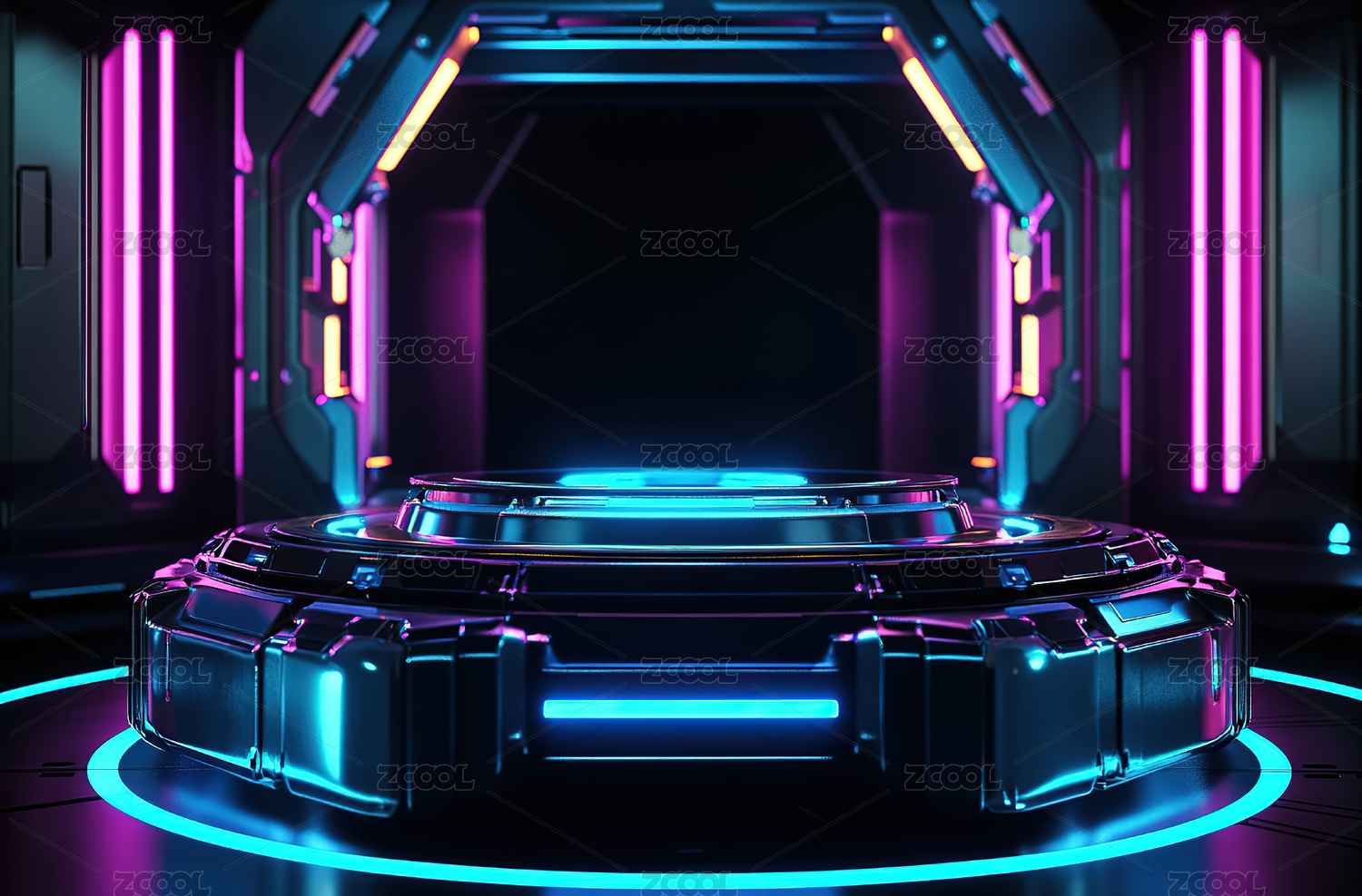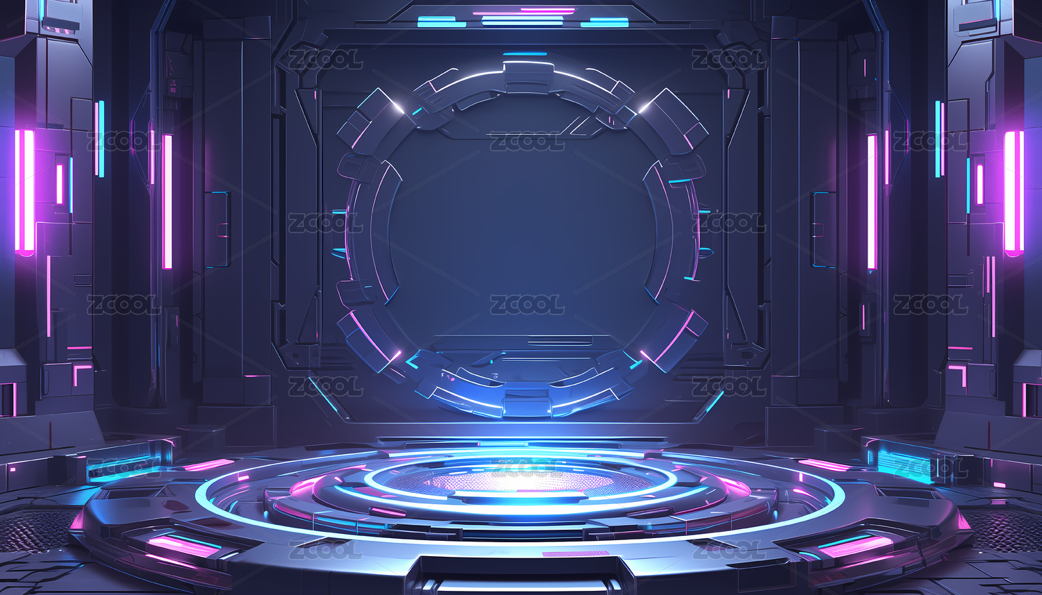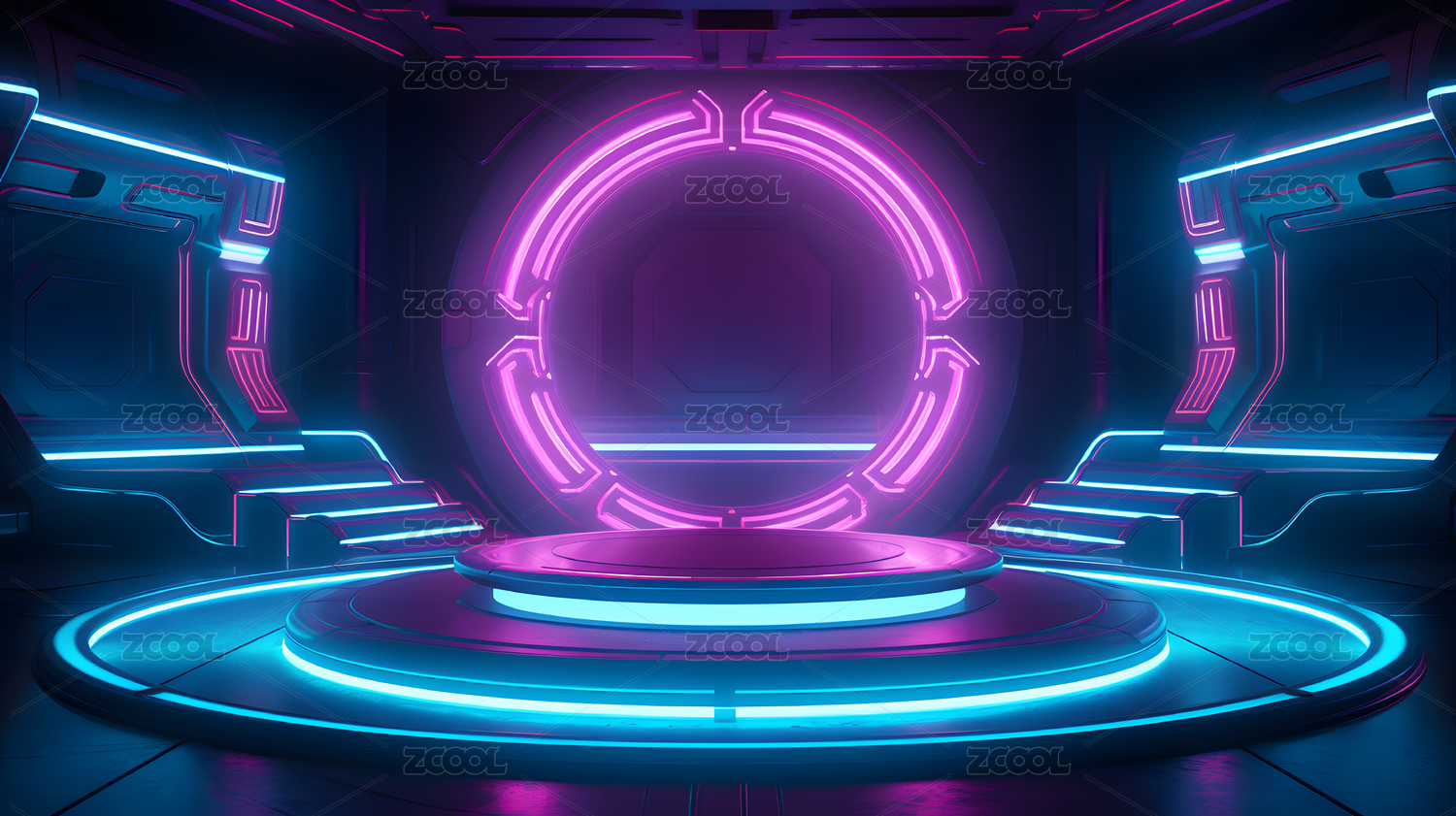 数码紫蓝色霓虹灯圆展台电商图形海报背景