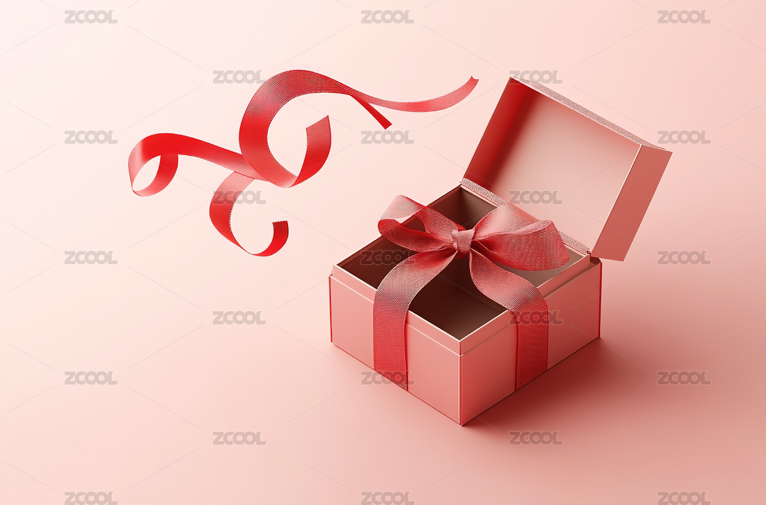 浅色背景红色礼盒和打结的蝴蝶结丝带