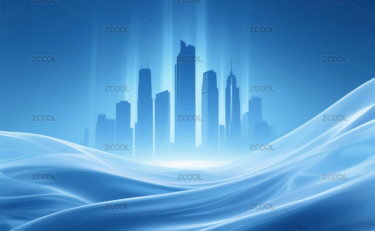 蓝色商务科技未来玻璃质感图形设计城市建筑