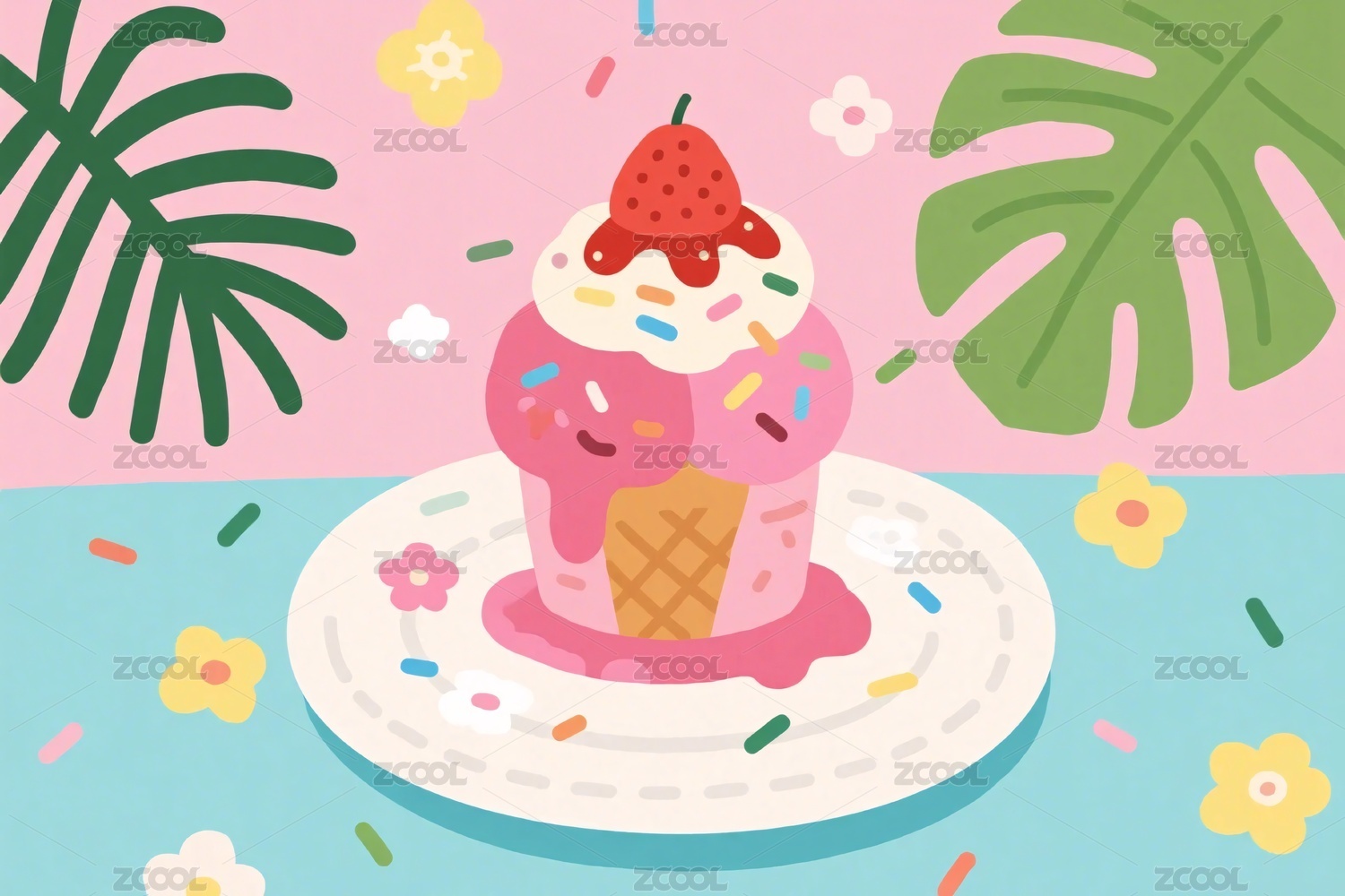 夏天美食冰淇淋雪糕插画解暑降温饮料海报