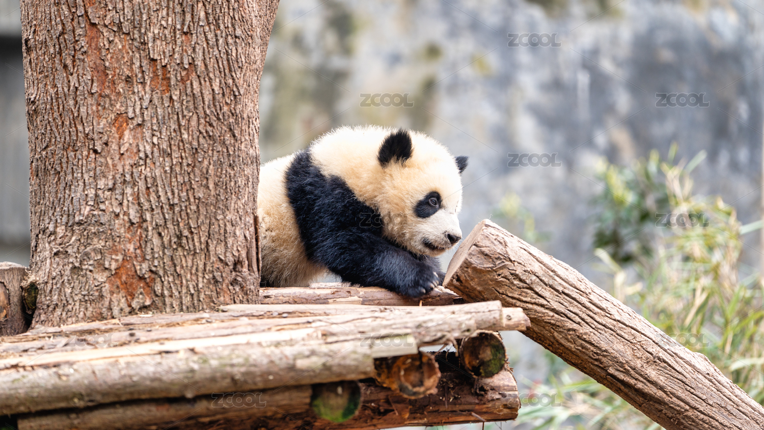 成都大熊猫繁育研究基地的大熊猫综合场景