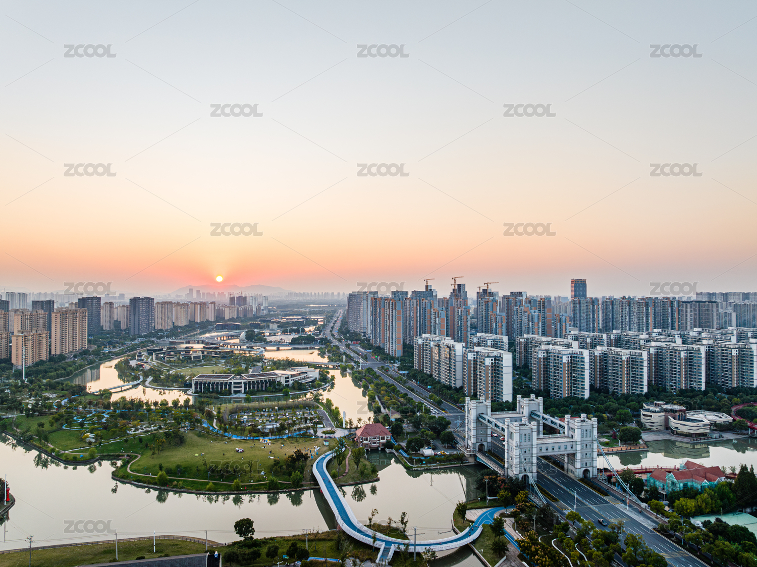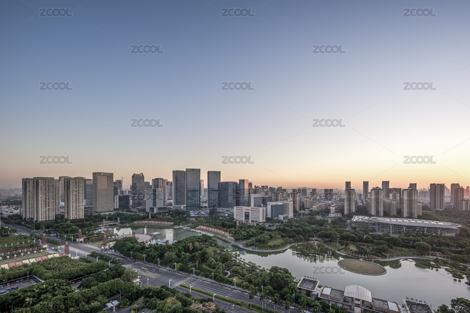 浙江宁波市鄞州区东部新城世纪大道航拍风光