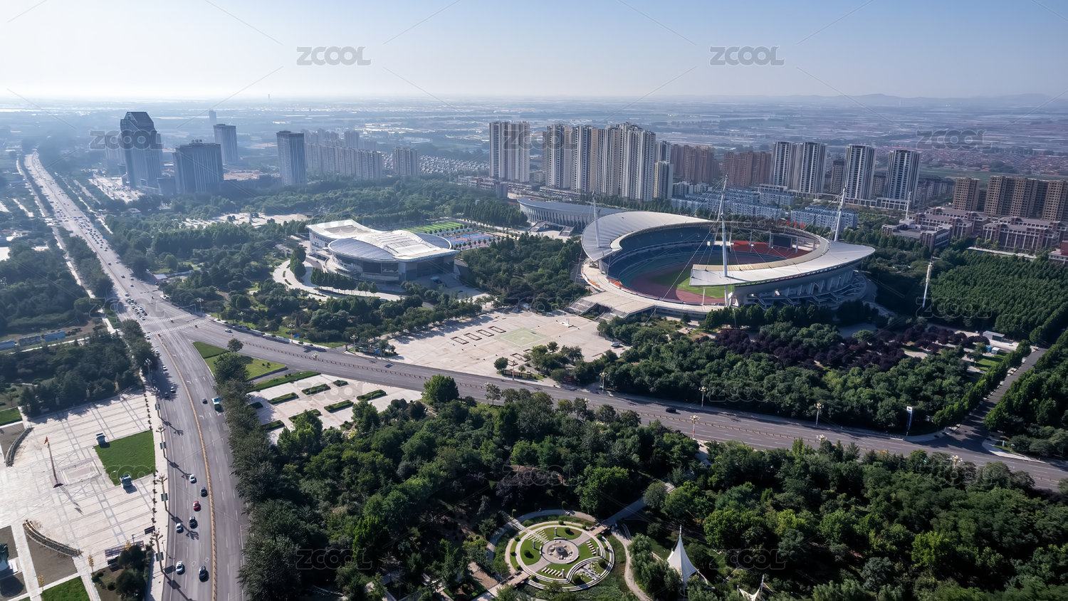 航拍沈阳奥体中心五里河体育场运动健身设施