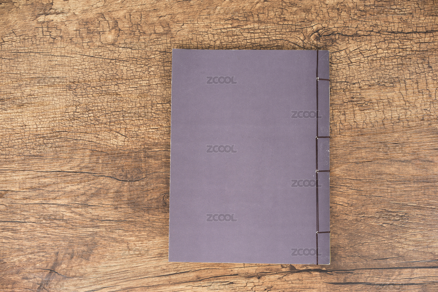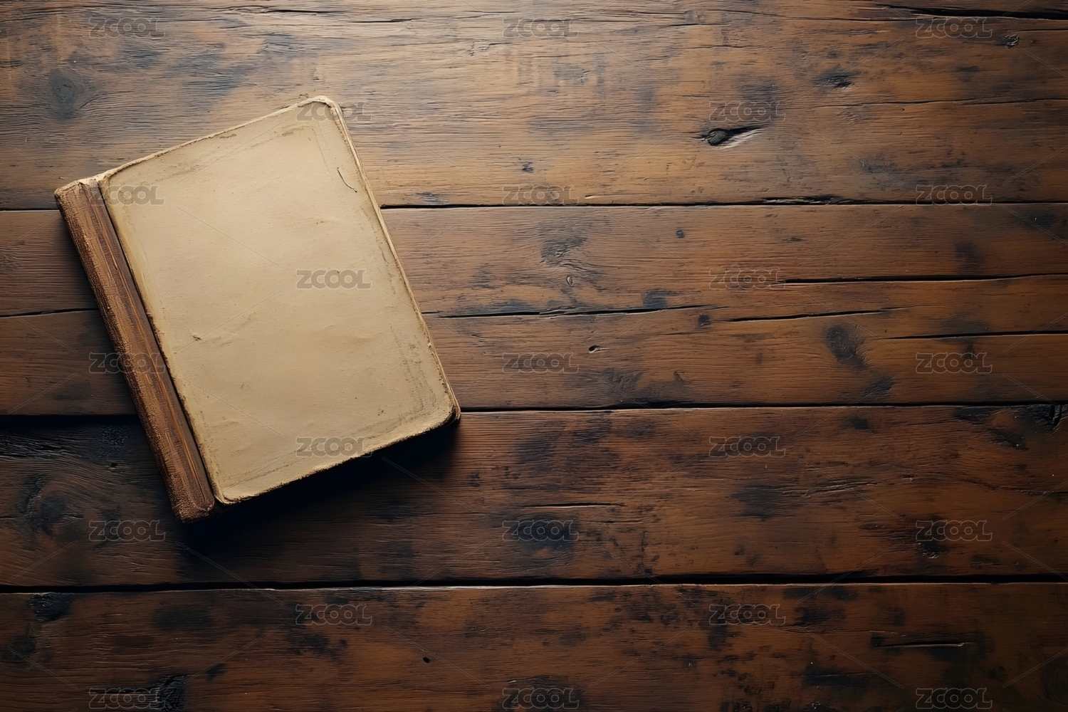 温暖的自然光下放在仿木地砖上的棕红色书本