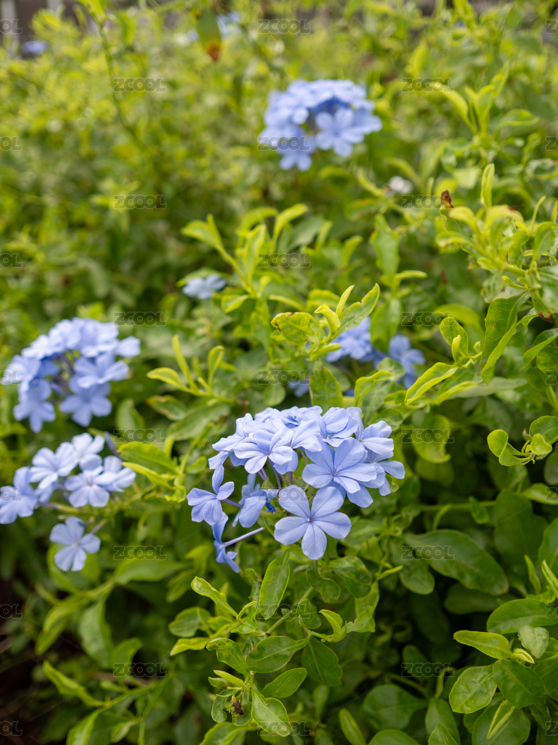 夏季户外花丛中盛开的蓝紫色蓝雪花