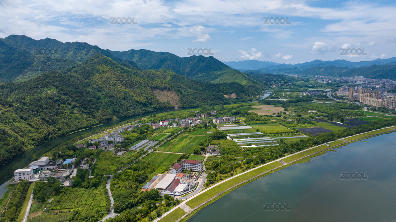 航拍杭州桐庐分水江