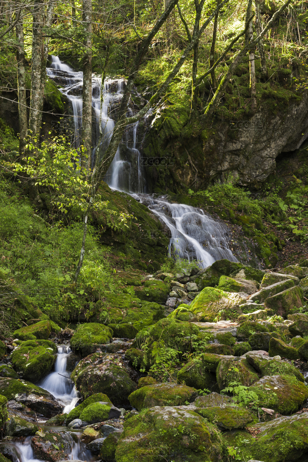 户外,森林,白昼,山林,绿色,溪流,石阶,瀑布