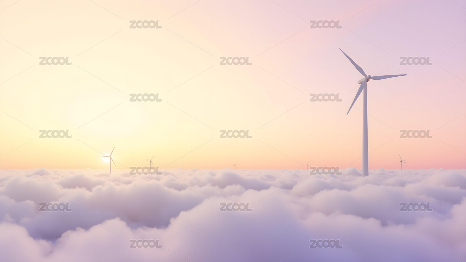 云海中的风力发电机