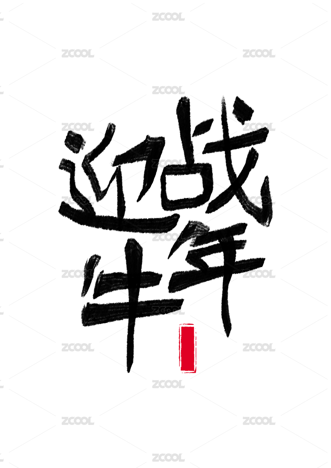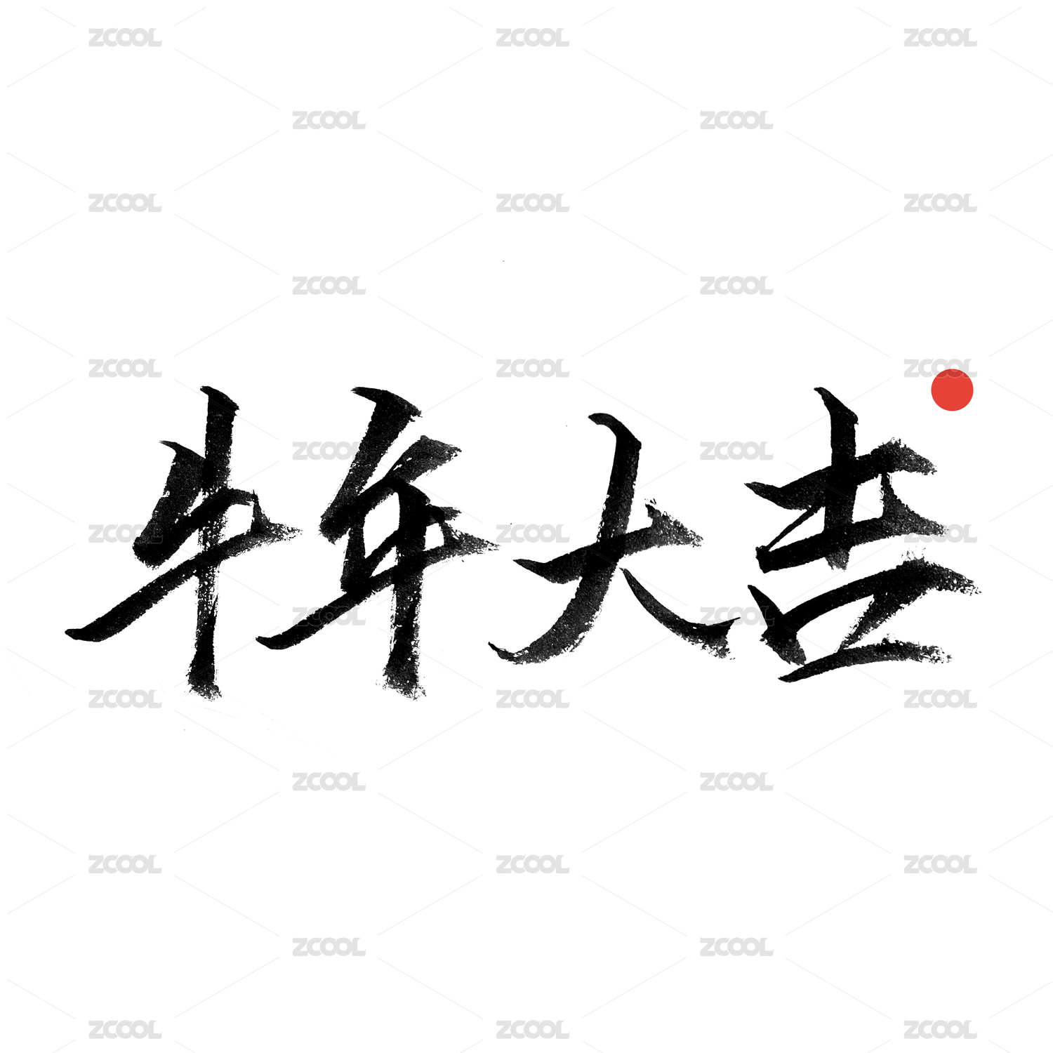 牛年鸿运-中文手写汉字书法字体字形中国风