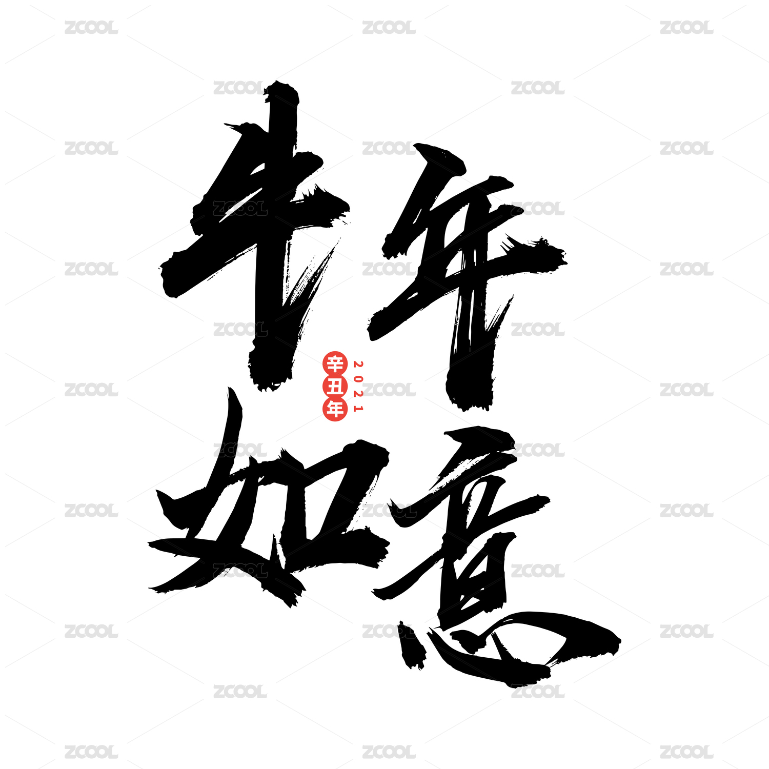 牛年如意-手写汉字书法字体