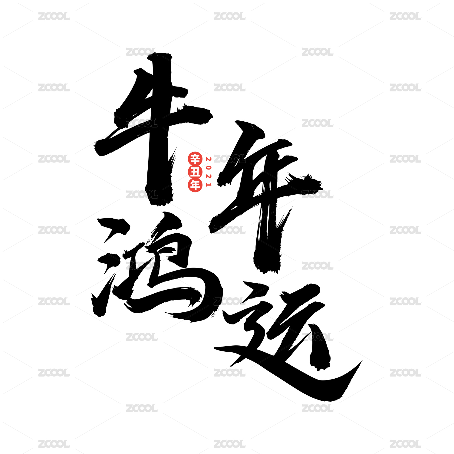 牛年鸿运-中文手写汉字书法字体字形中国风