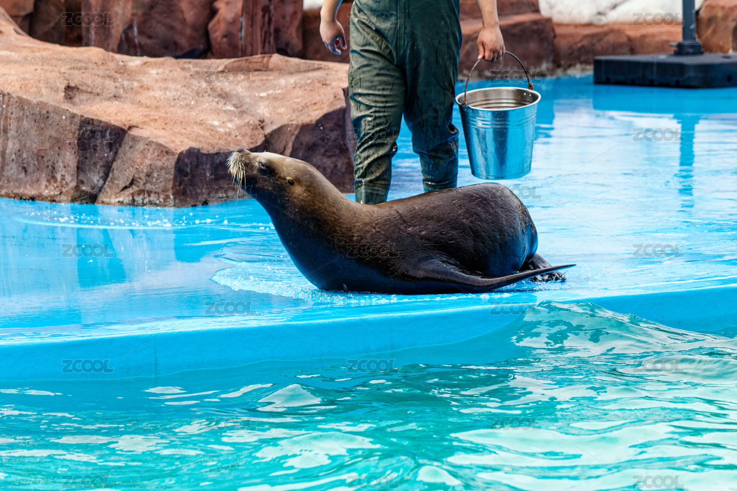 海洋馆中海狮遨游抢食