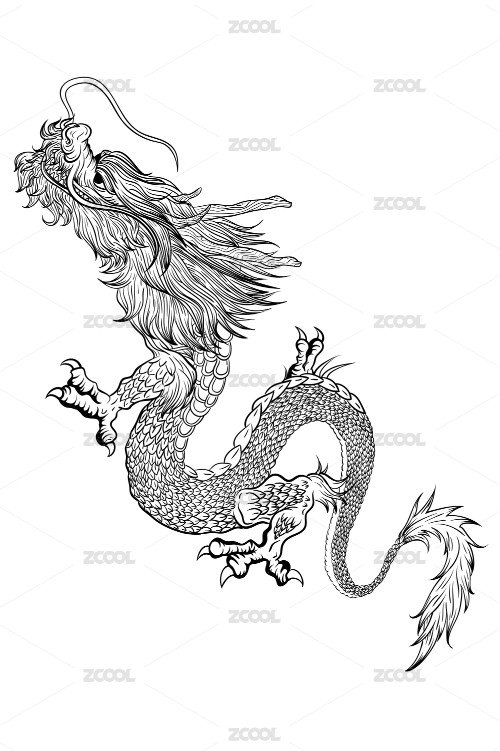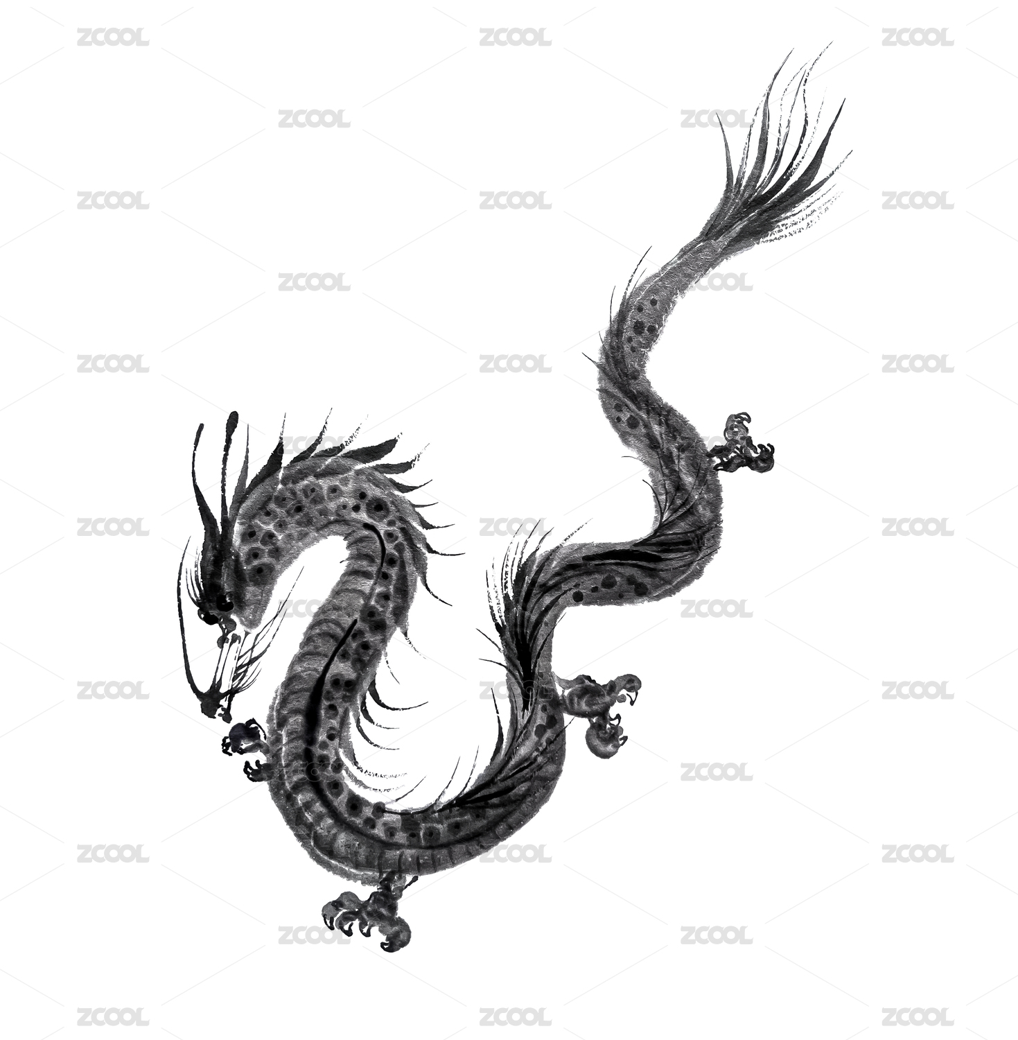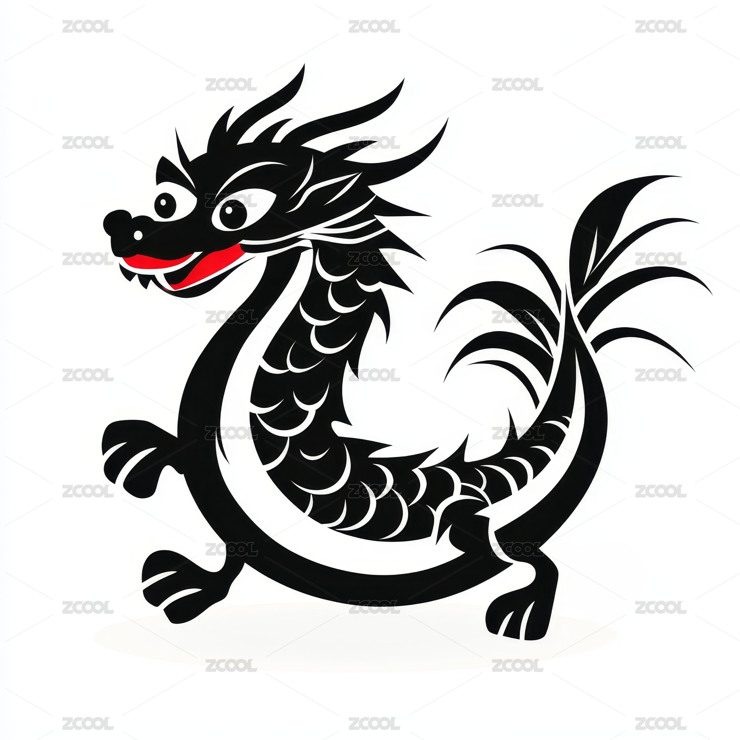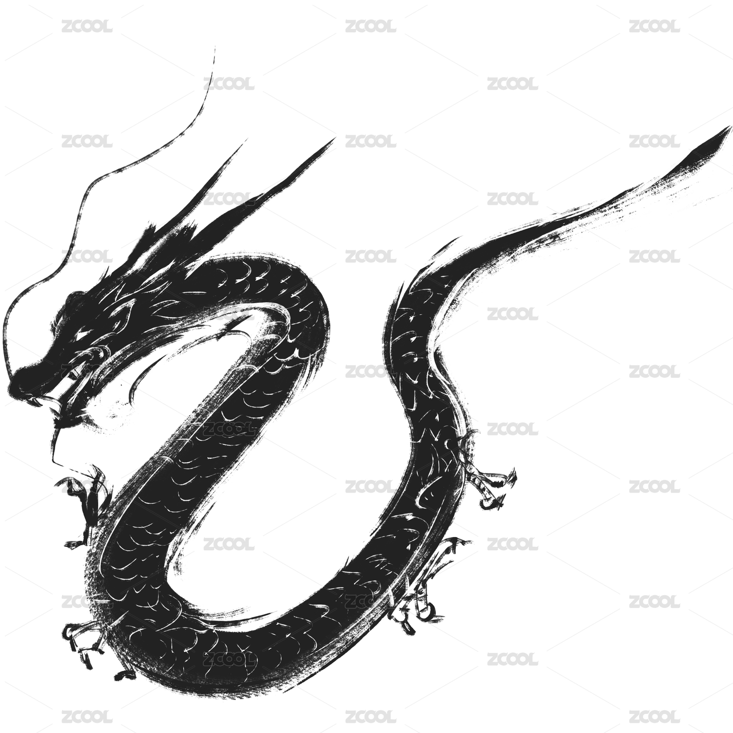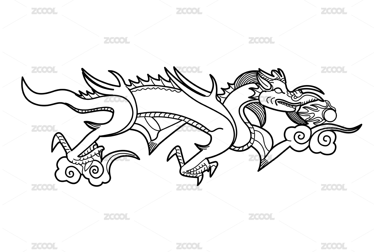 手绘,卡通,龙纹,动物,飞龙,黑色,龙,祥瑞,插画,龙图腾