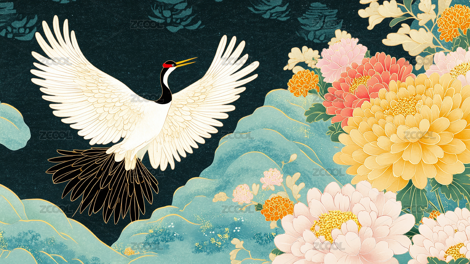 重阳节主题背景仙鹤丹顶鹤中国风国画工笔画