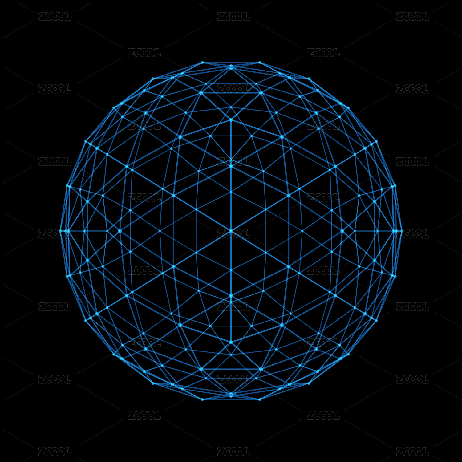 科技感,圆球,线条,三角面,球形,抽象,蓝色,光线,发光,对称