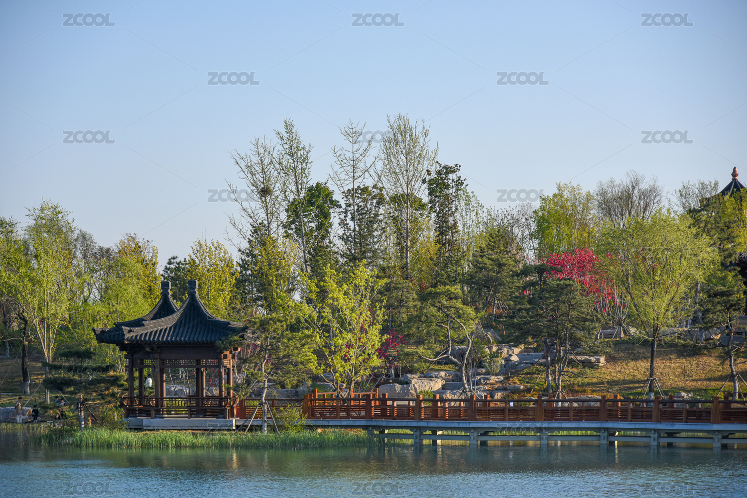 中国,河北省,雄安新区,容城县,悦容公园,春季,公园,古建筑,建筑,湖