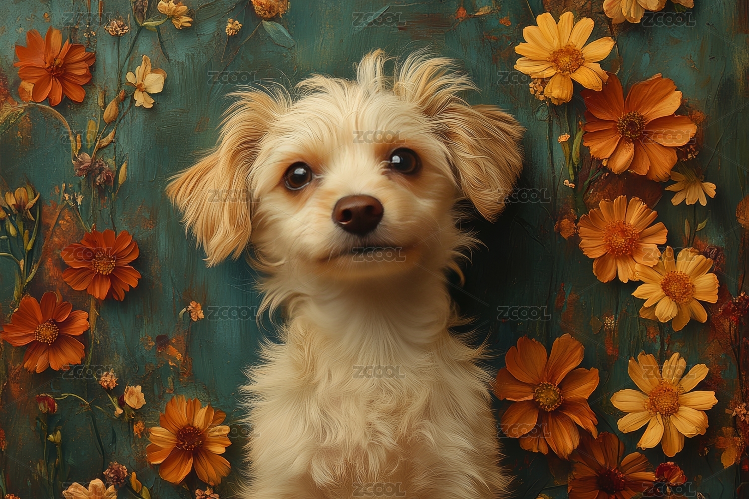 小狗,秋天,树叶,落叶,眼睛,毛发,背景,色彩,温馨,可爱