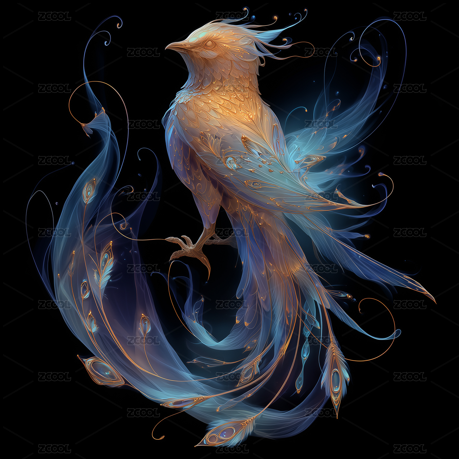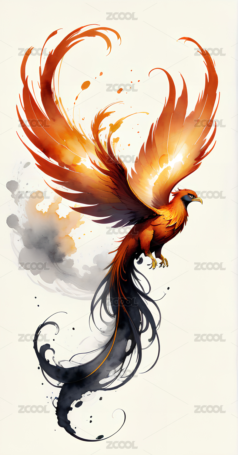 国潮动物凤凰展翅中式传统吉祥纹样色彩明亮