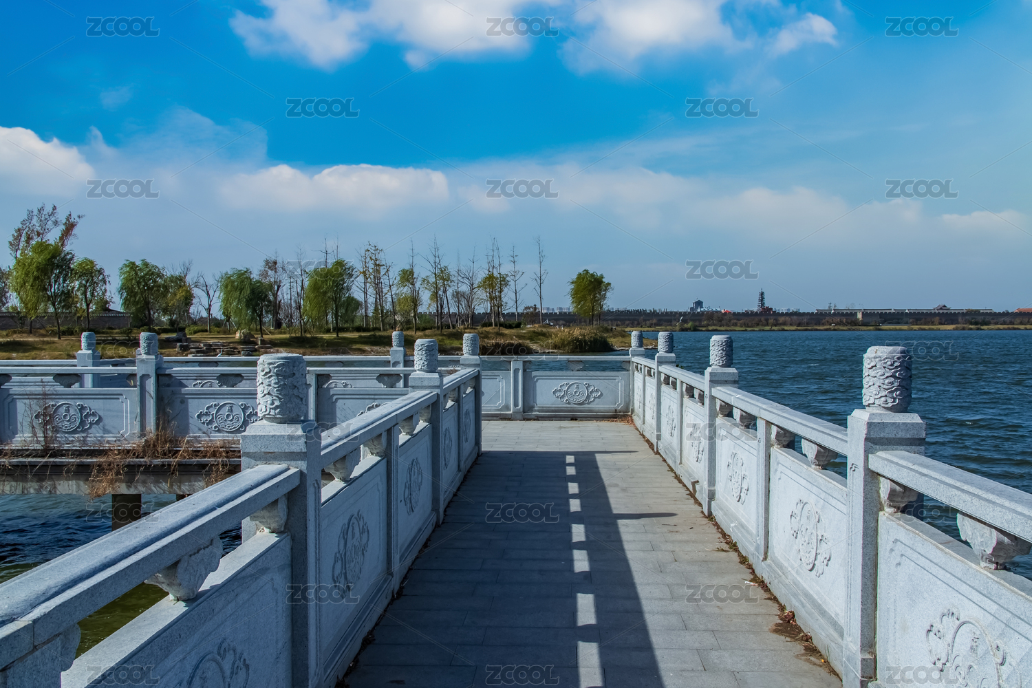 中国河南省商丘市南湖步行栈道护栏装饰建筑