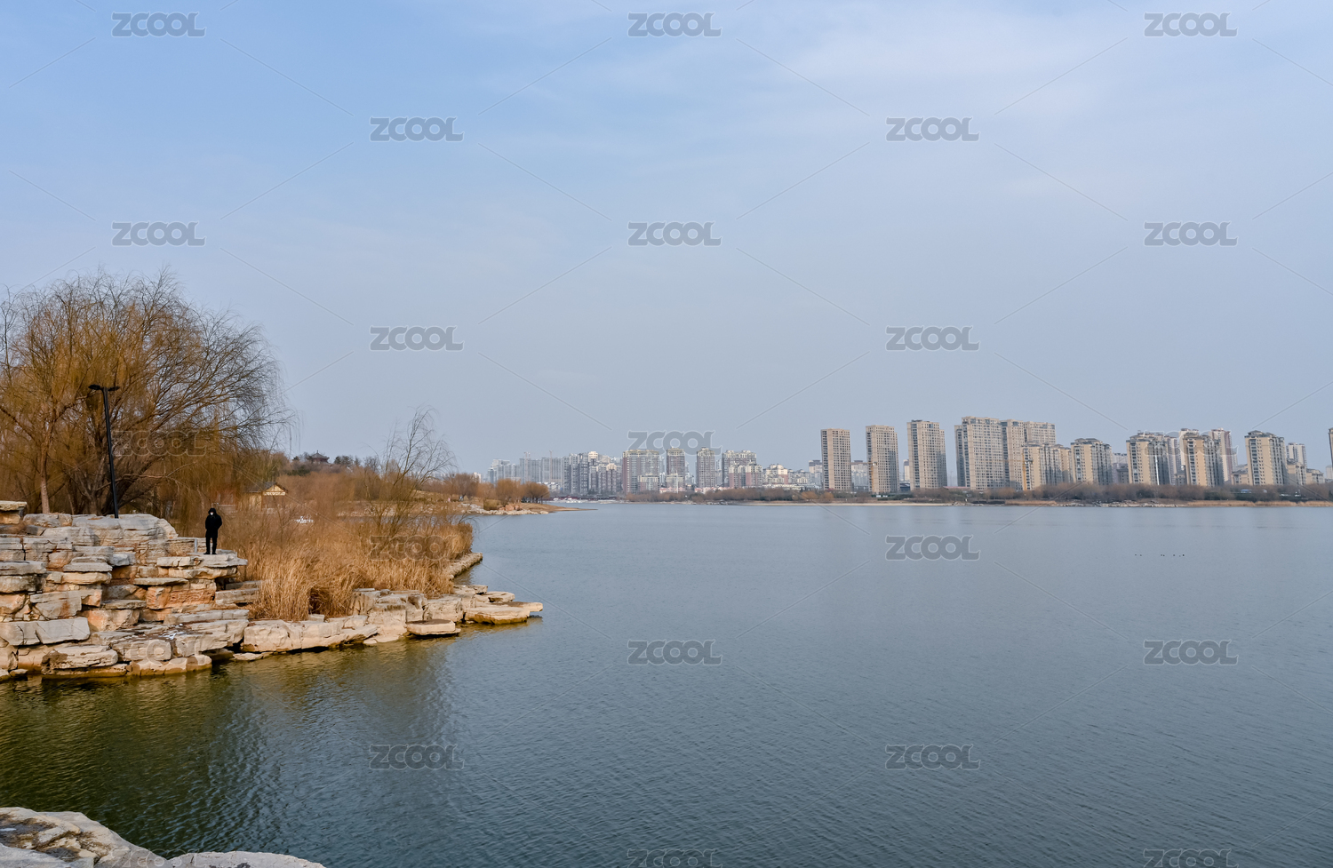 北京玉渊潭公园自然与城市风光