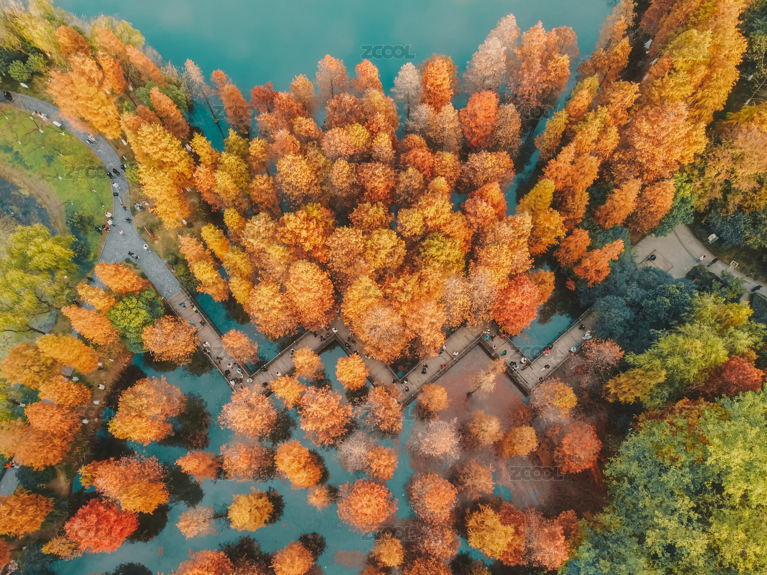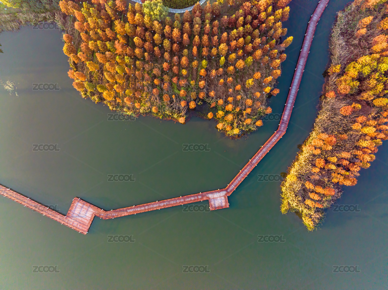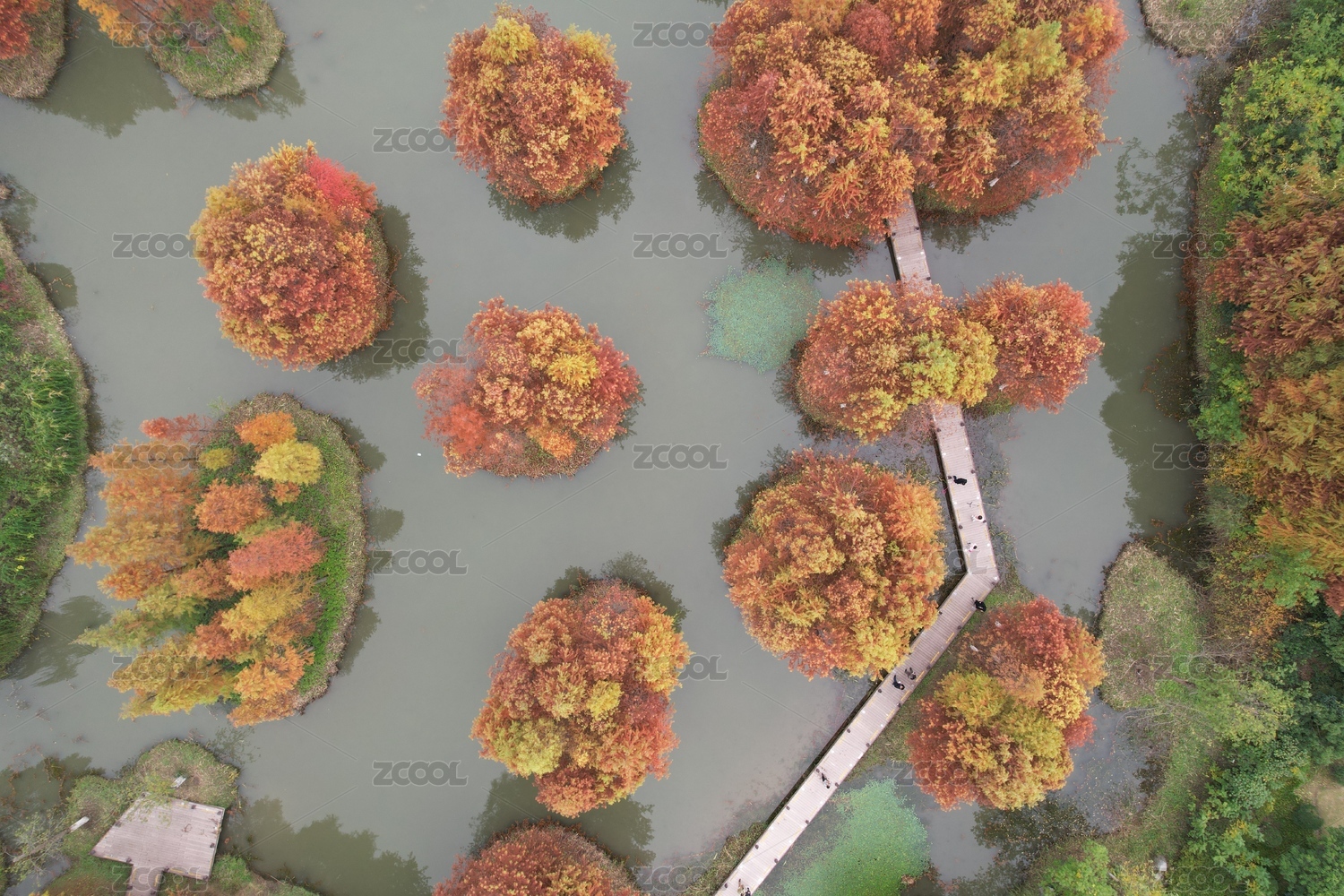 中江苏常州城市风光翠竹公园水杉林秋景航拍