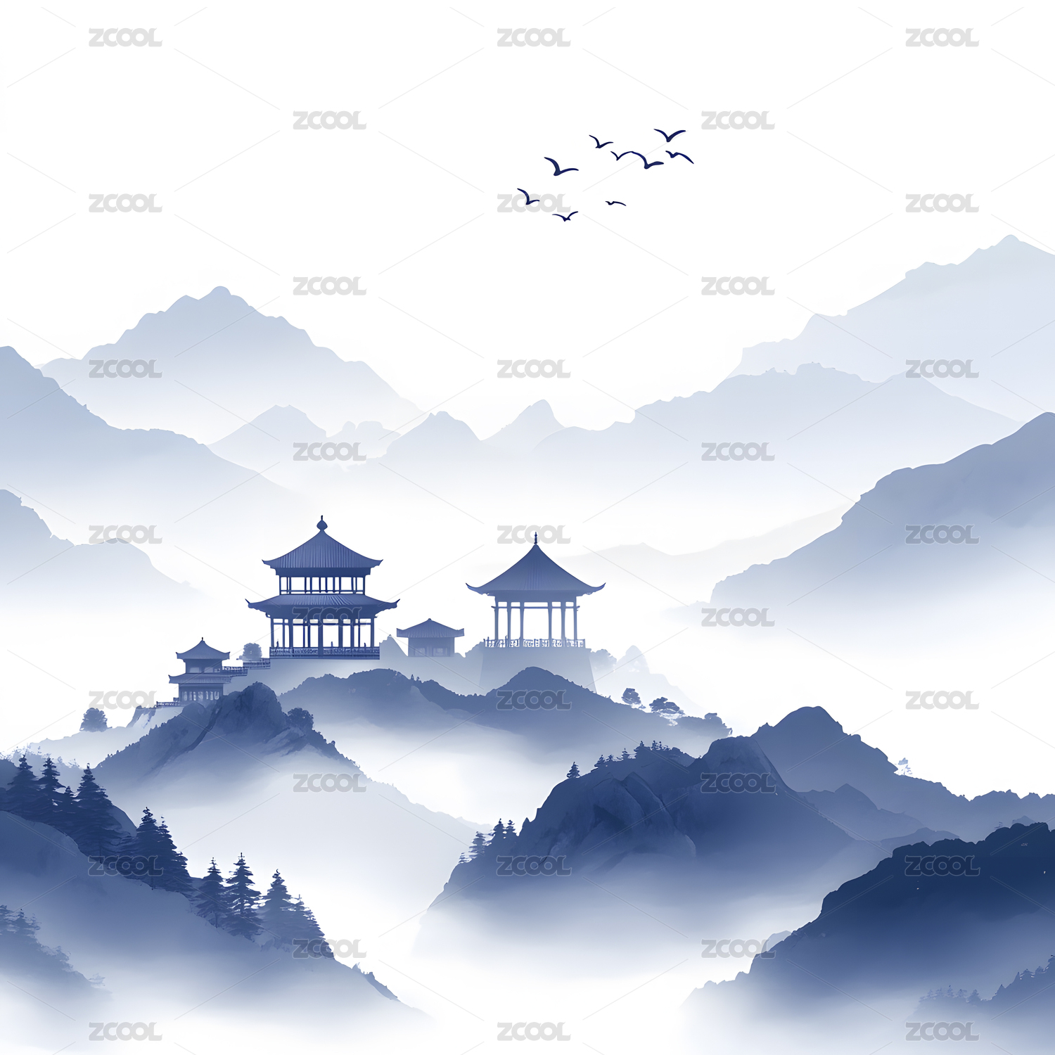 中国风山顶亭台楼阁