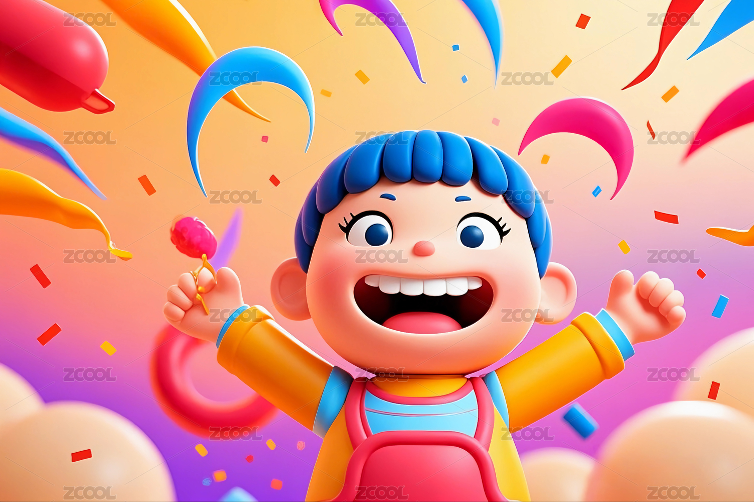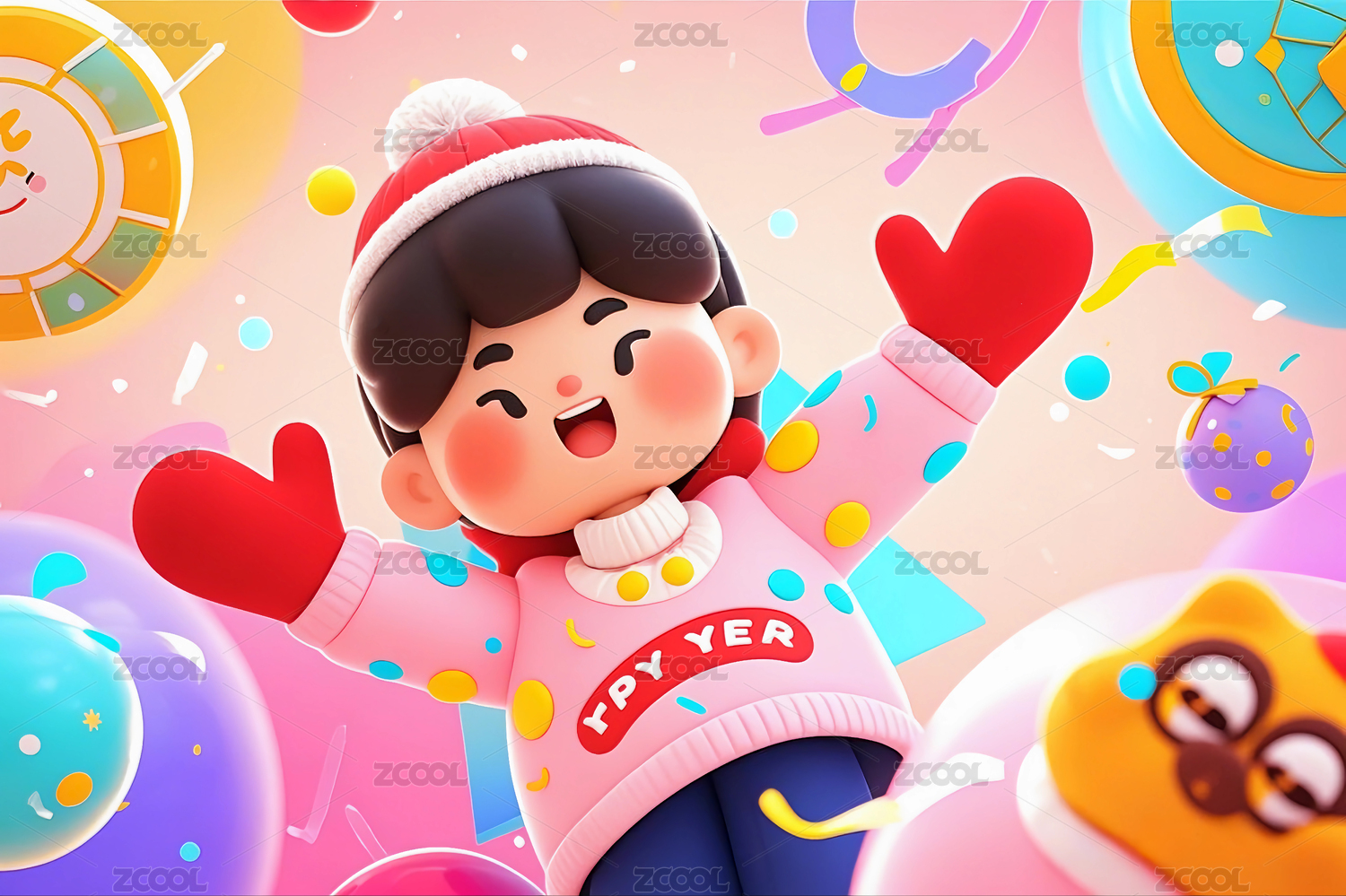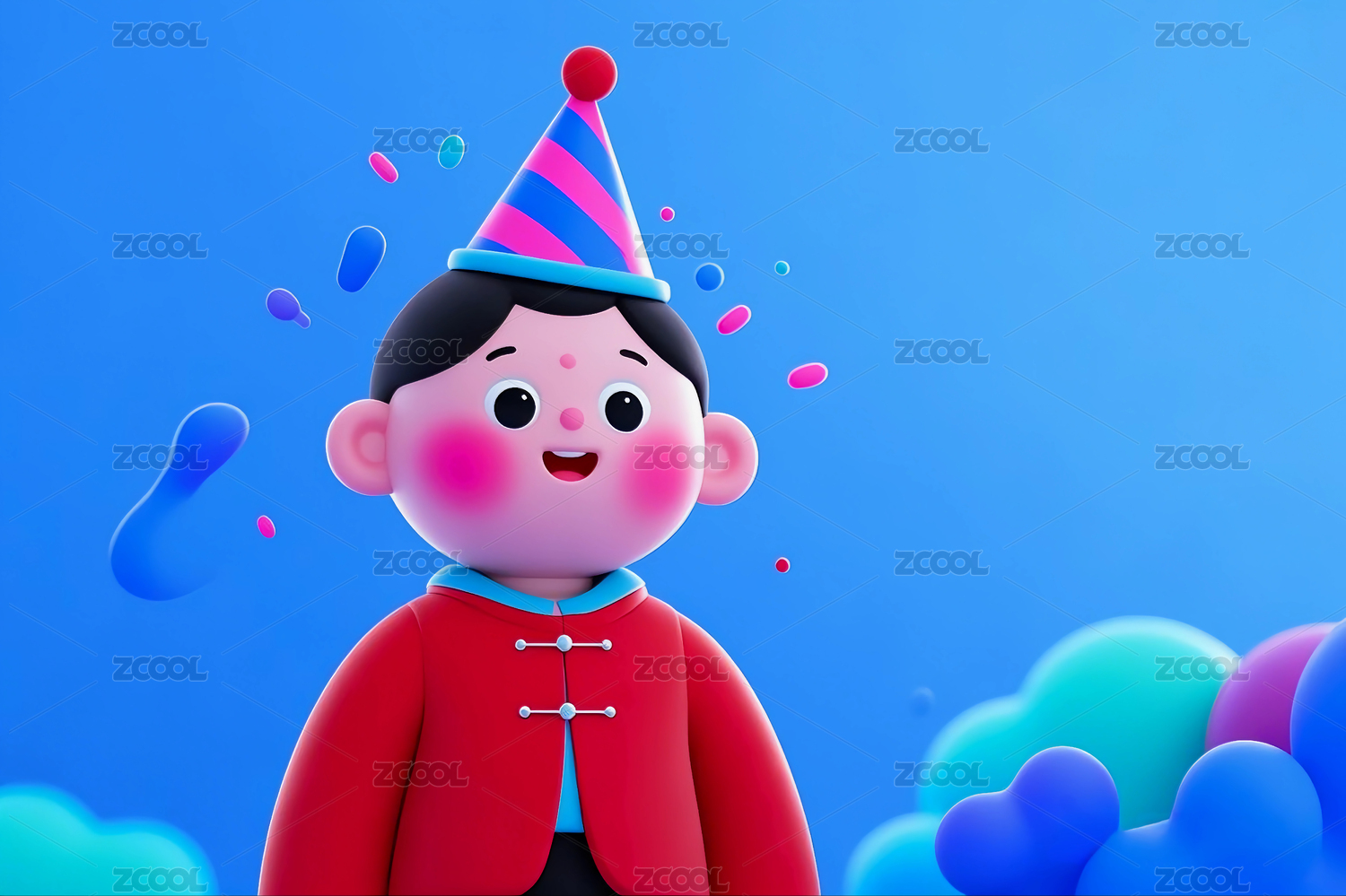 3D戴着帽子庆祝节日的卡通可爱男孩