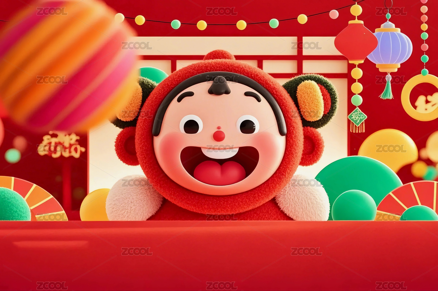插画,艺术,儿童,女孩,娃娃,喜庆,节日,过年,新年,可爱
