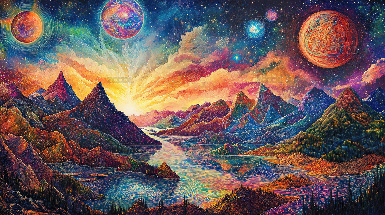 AI数字艺术,户外,地形,风景,高山,天空,背景,云,无人,自然