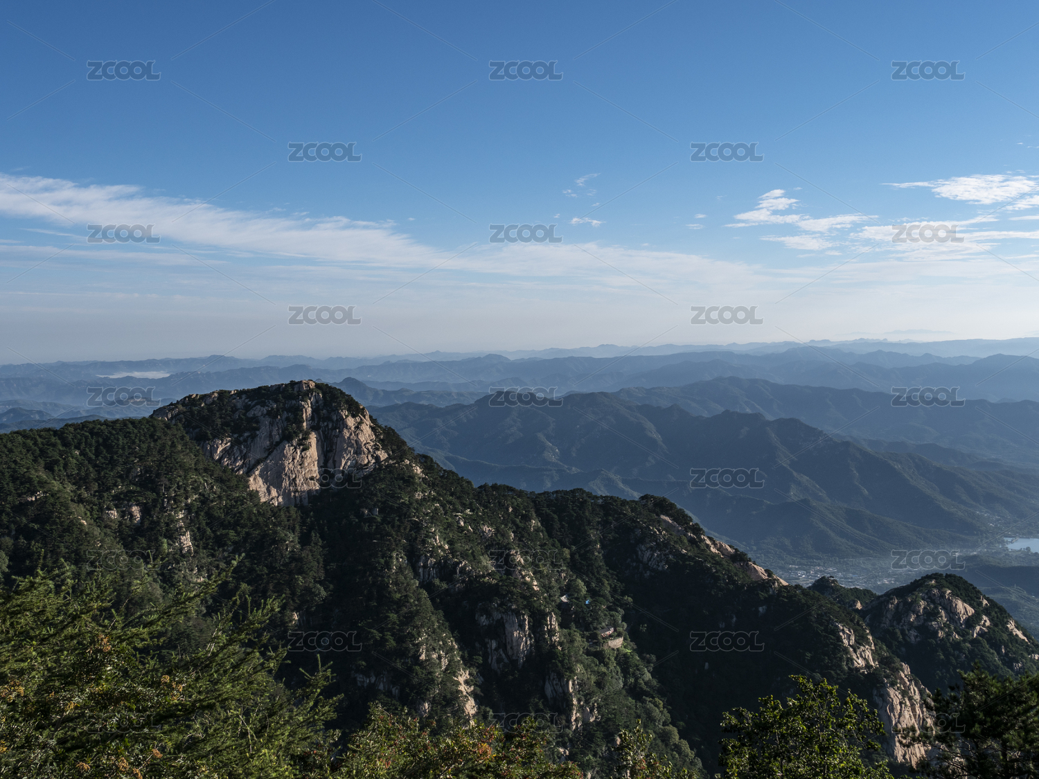 夏日秋天山东泰安泰山风景名胜区鸟瞰泰山山