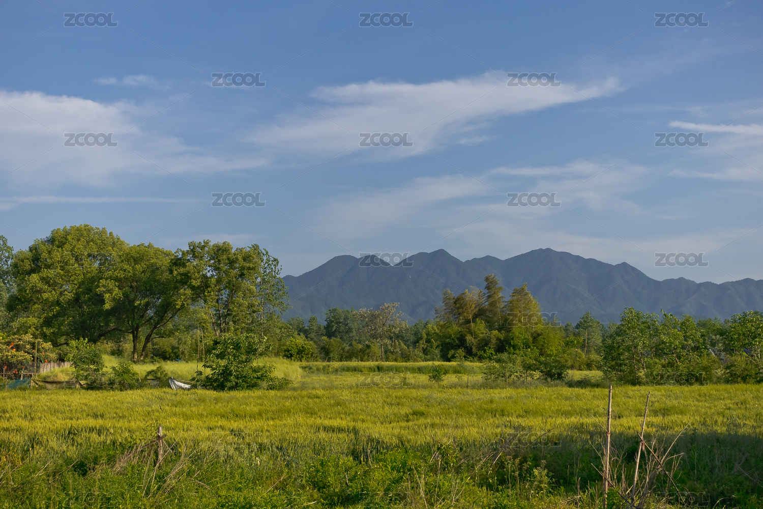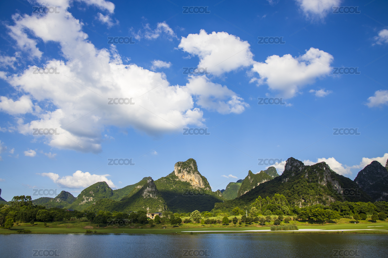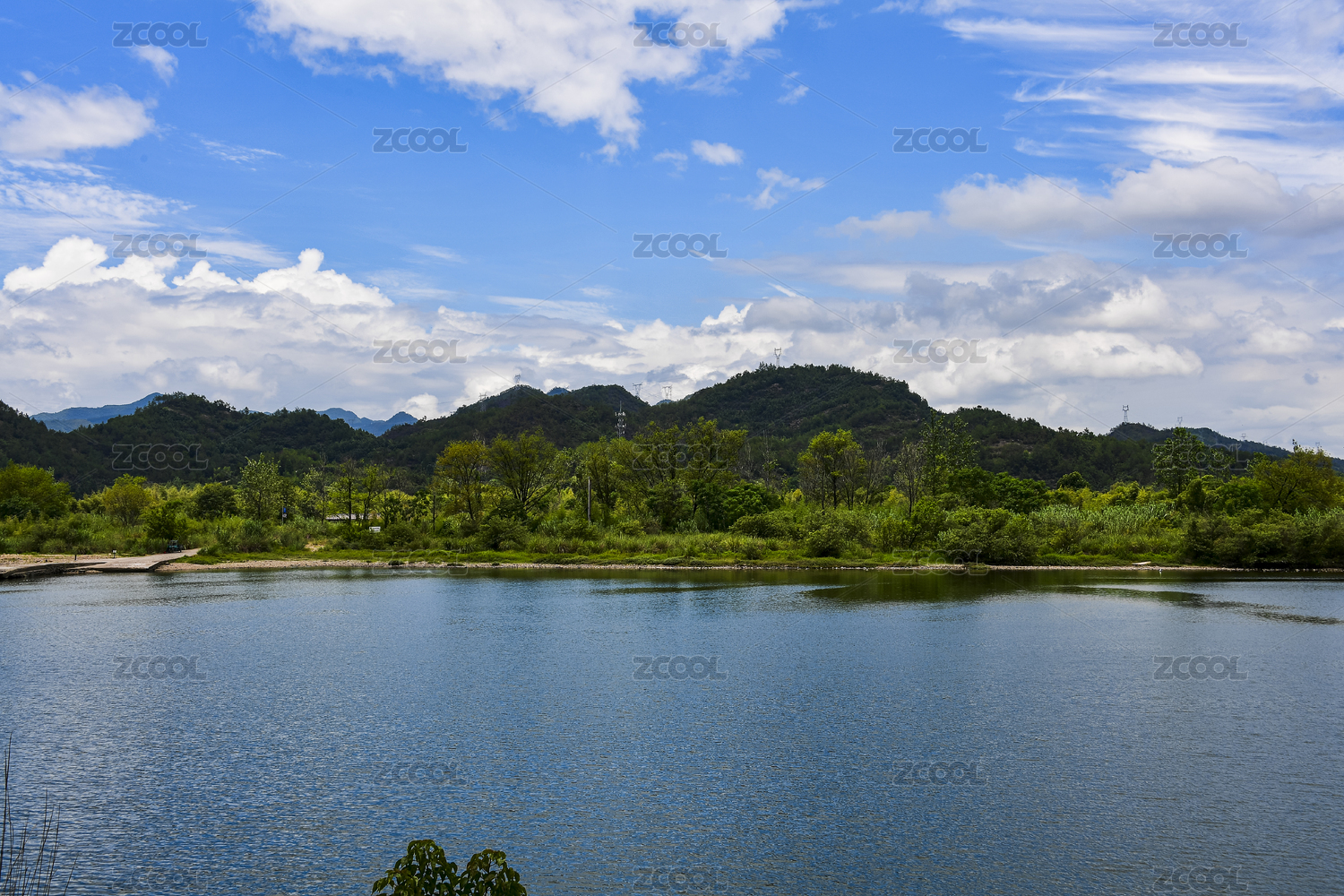蓝天白云远山绿树倒映在湖水中自然风景如画