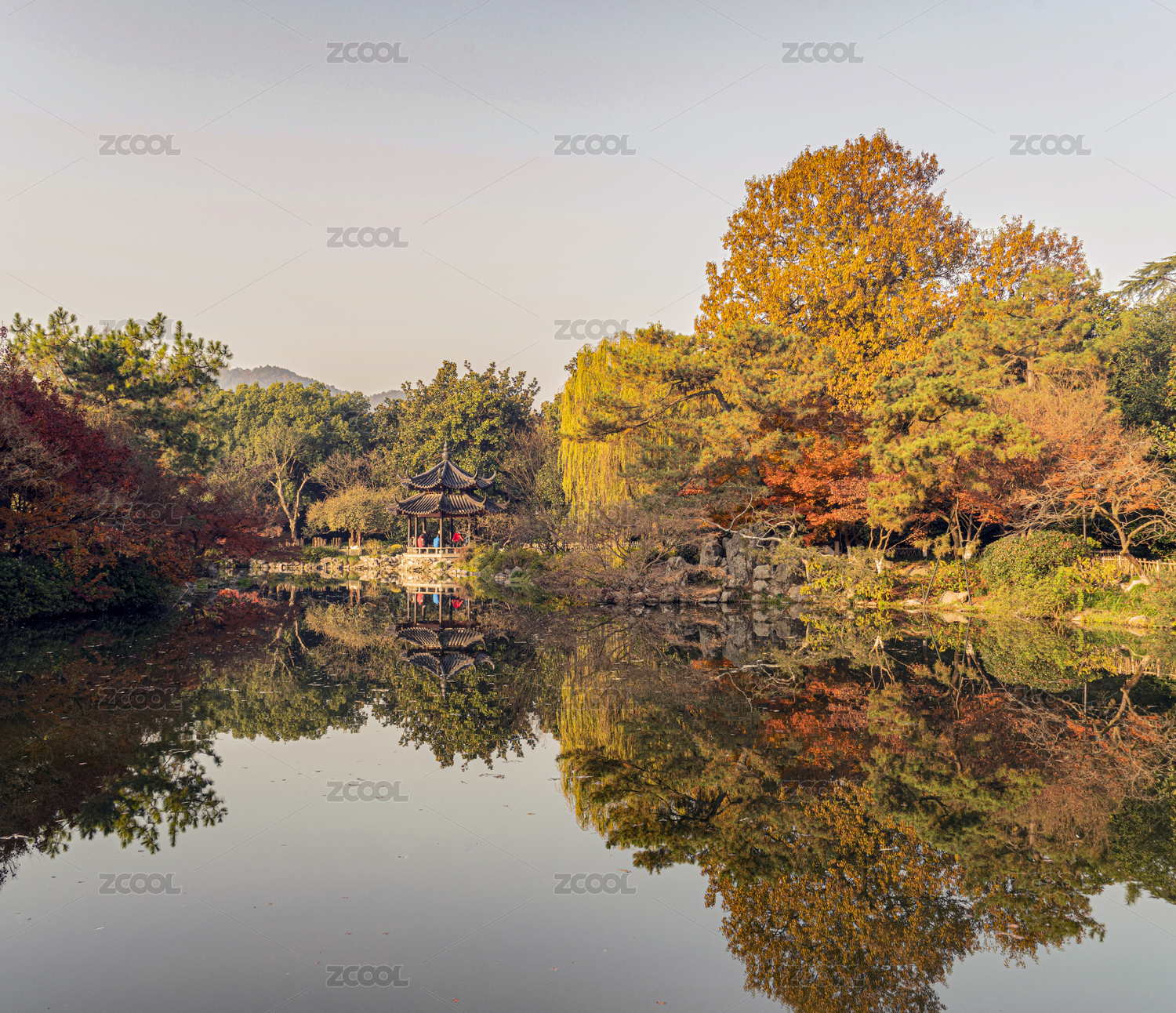 浙江杭州西湖花港公园园林秋景
