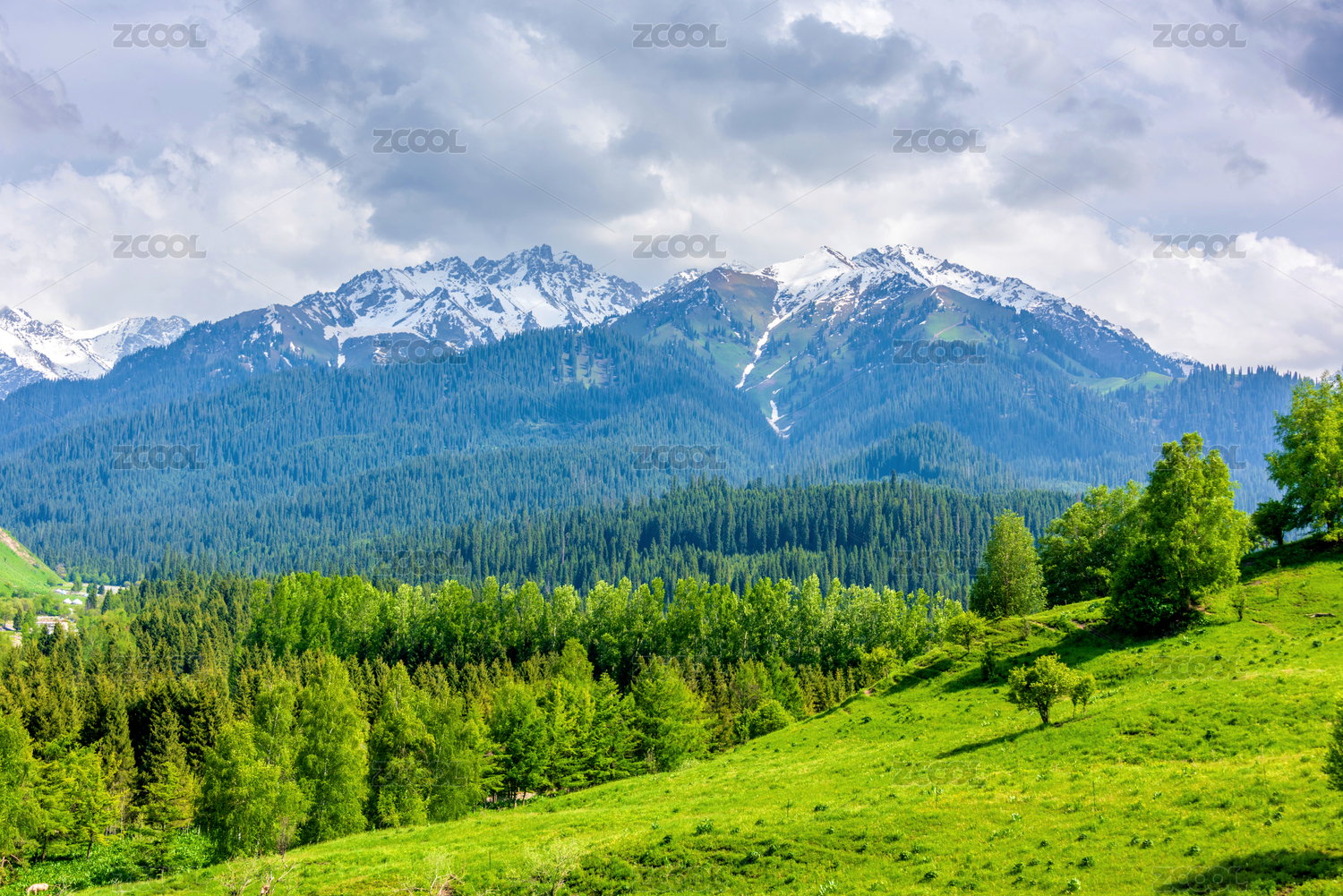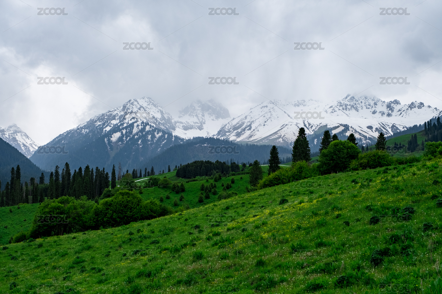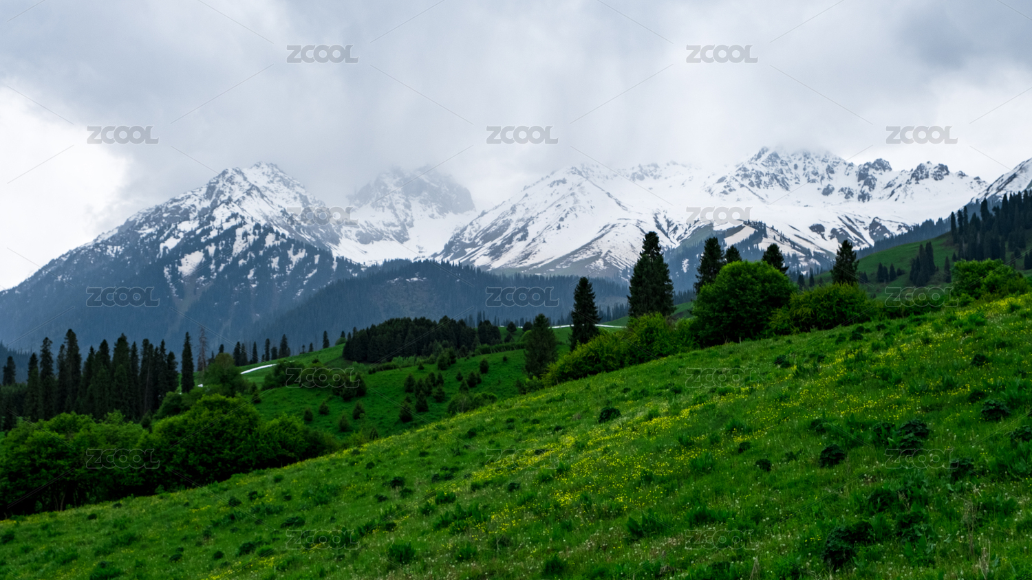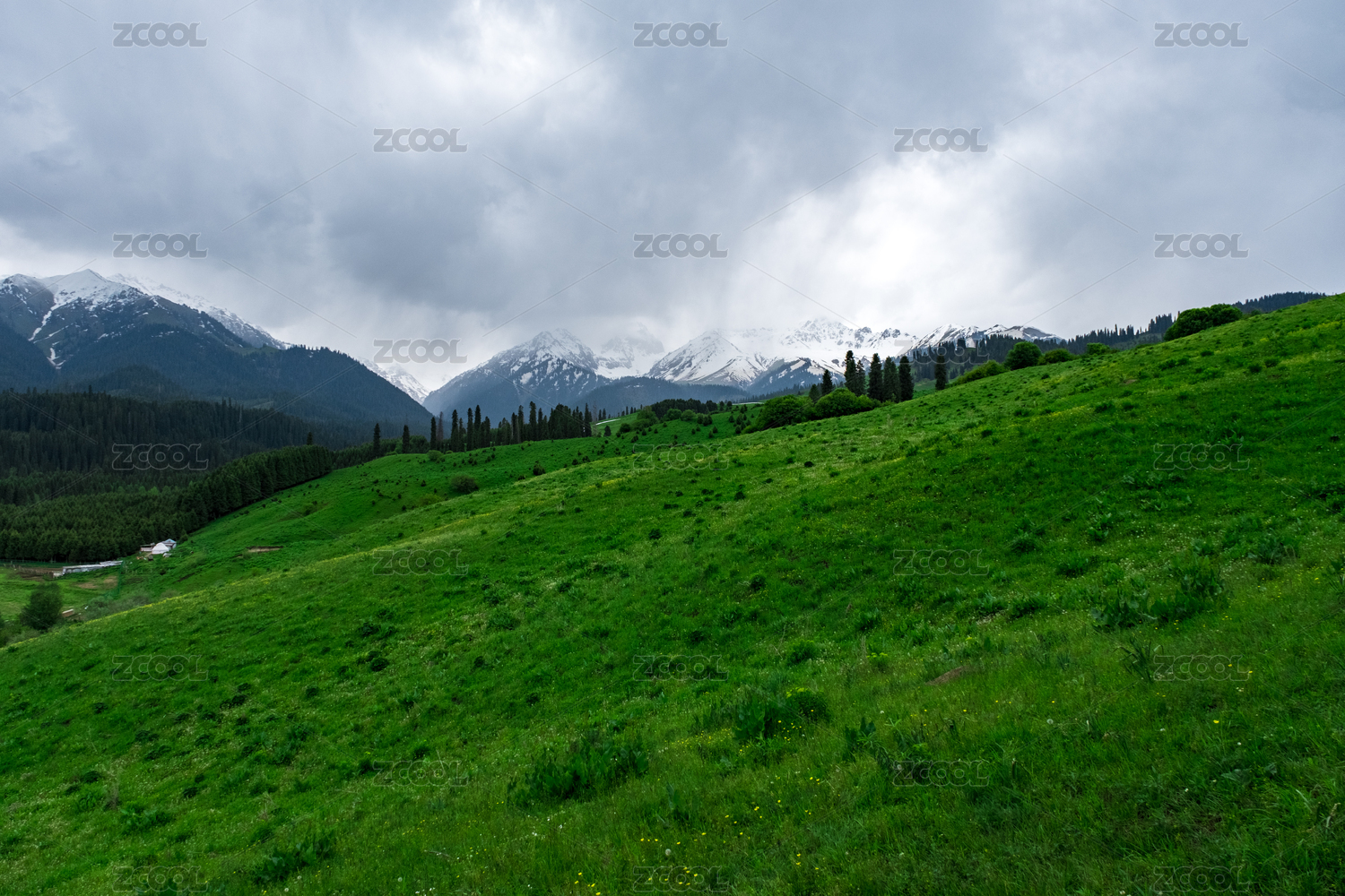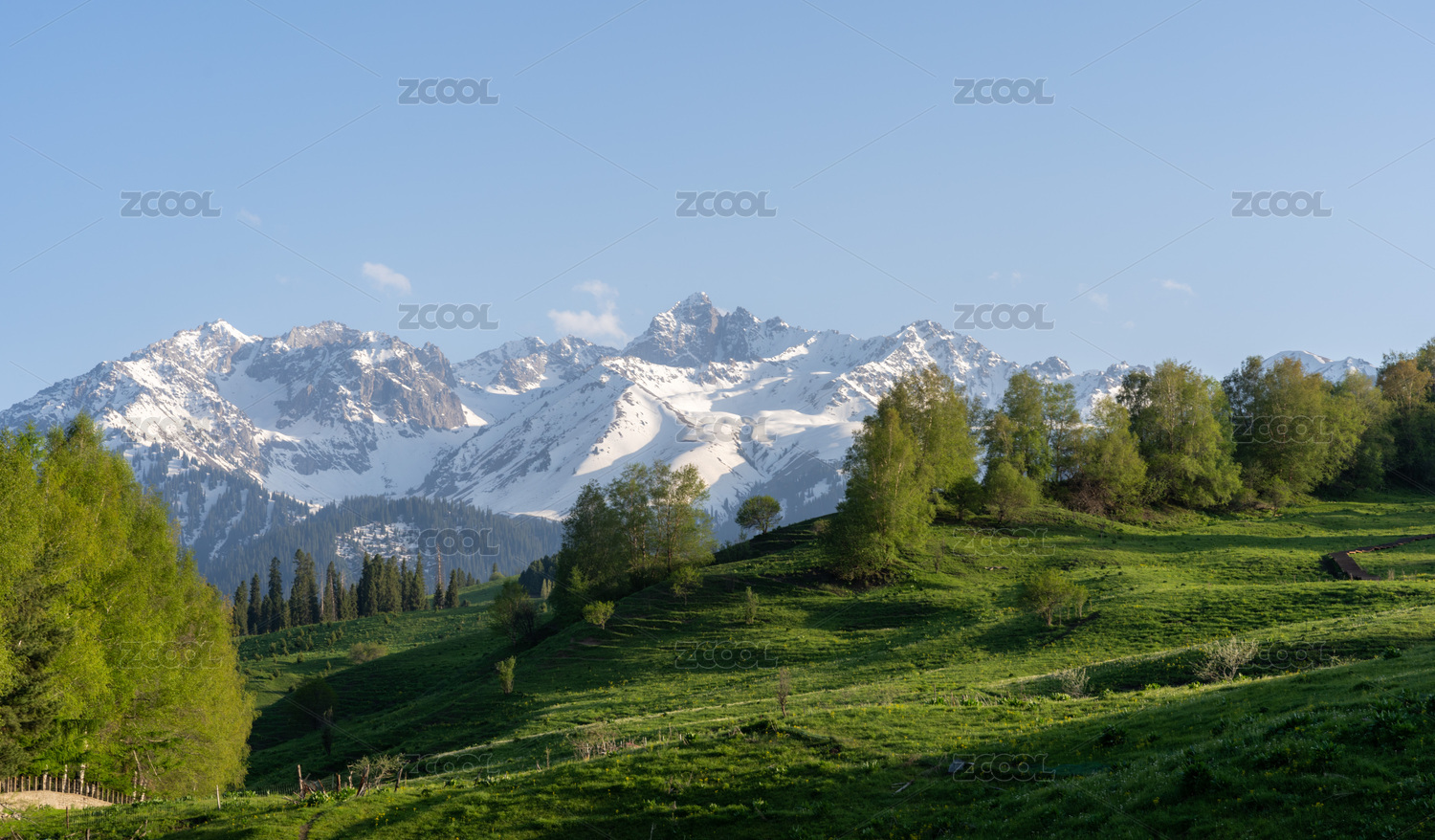 中国,夏天,牧场,恰西,高山,新疆,伊犁,雪山,天山,冰川