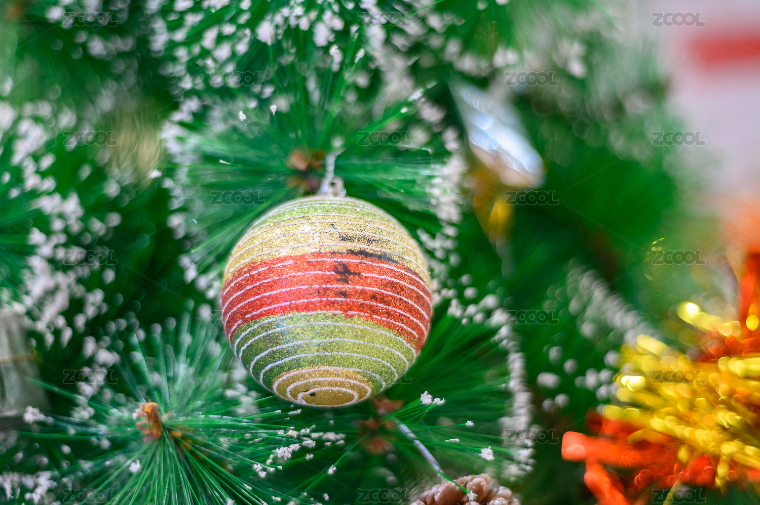 圣诞小装饰 红色果子 金色挂件 松树 雪