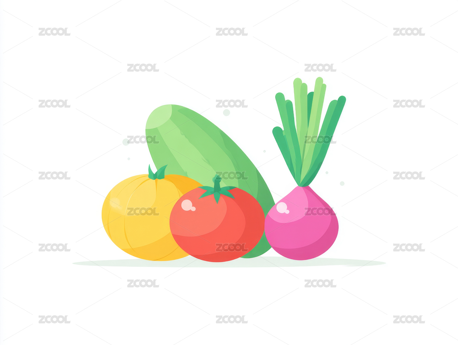 扁平插画风格 胡萝卜花椰菜洋葱番茄黄瓜