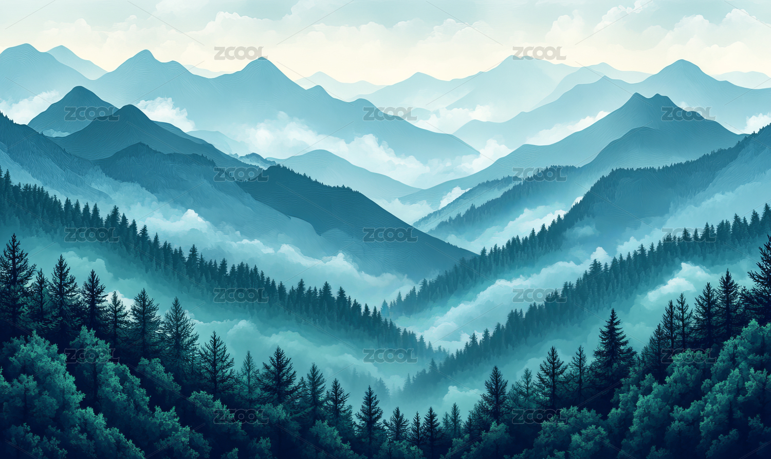 朦胧山峦与静谧森林