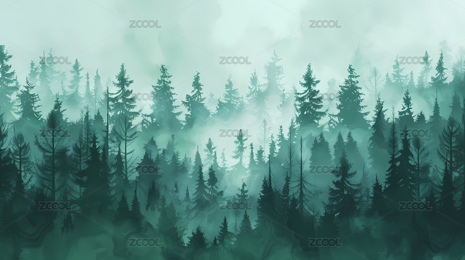 雾气森林风景画