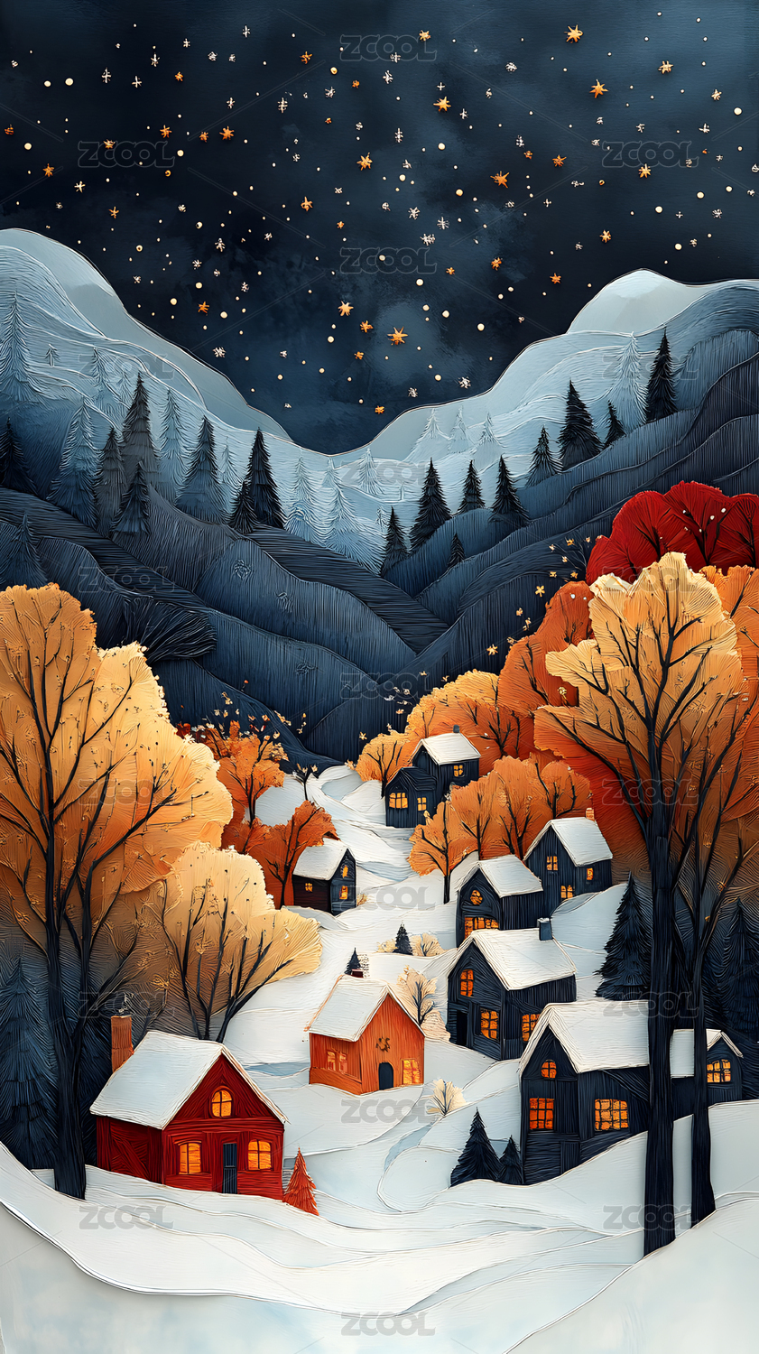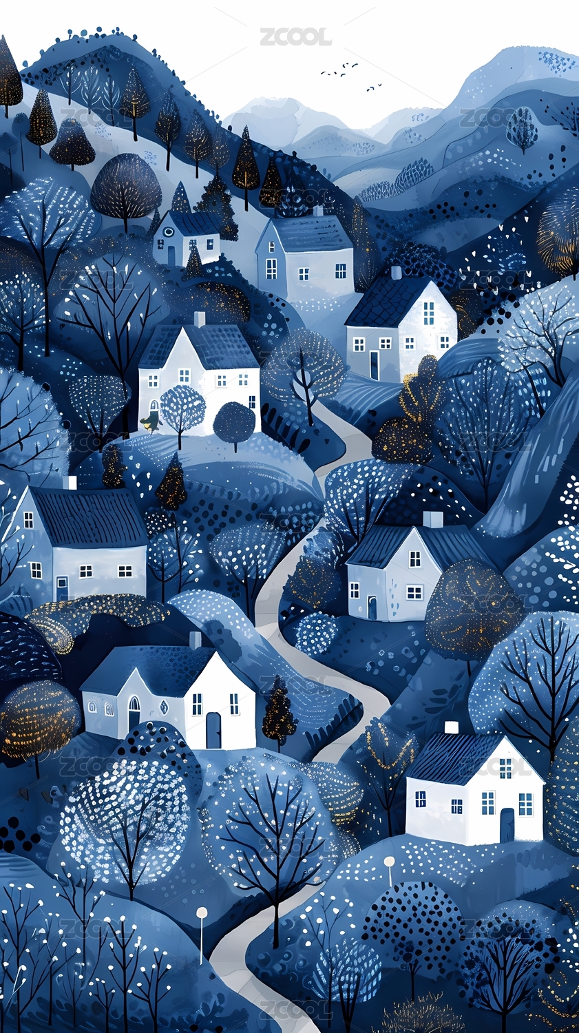 村庄,乡村,梦想,场景,房子,蓝色,白色,冬天,海岸,风景