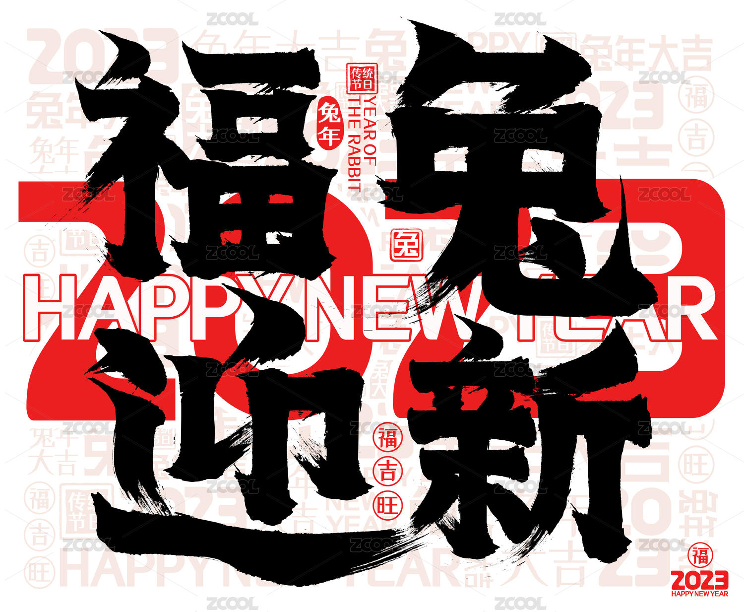 2023福兔迎新喜庆中国红兔年春节毛笔字