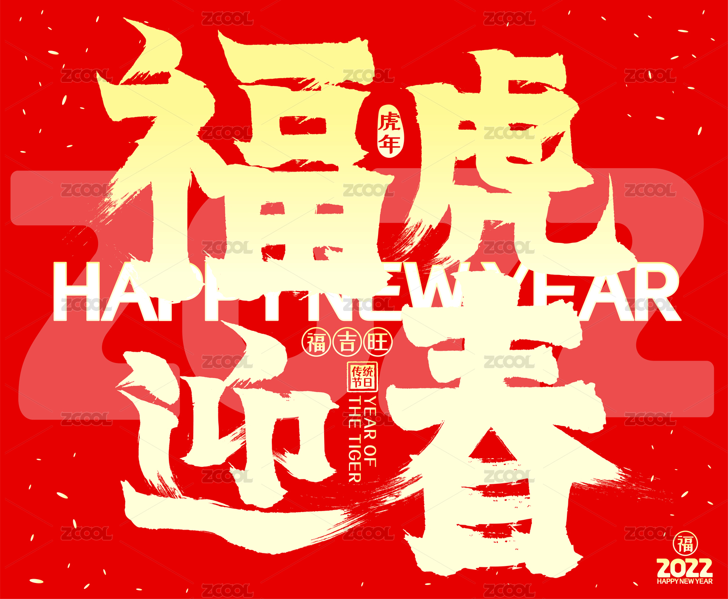 2023兔年快乐喜庆中国红春节新年毛笔字