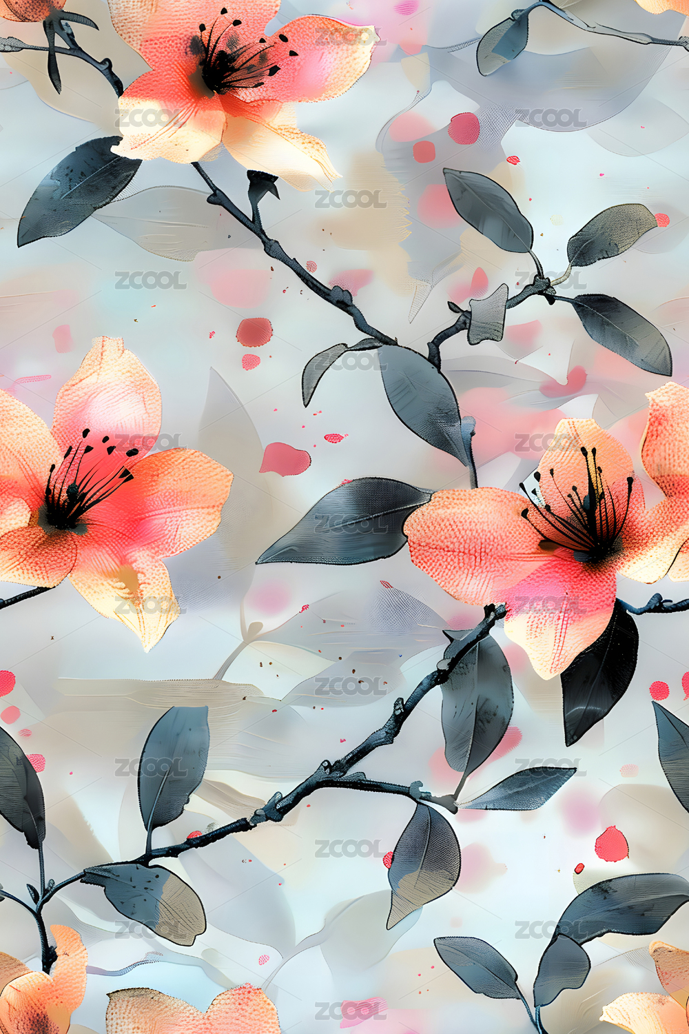 复古,白色,粉红色,叶子,花卉,自然,艺术,油画,抽象,花束