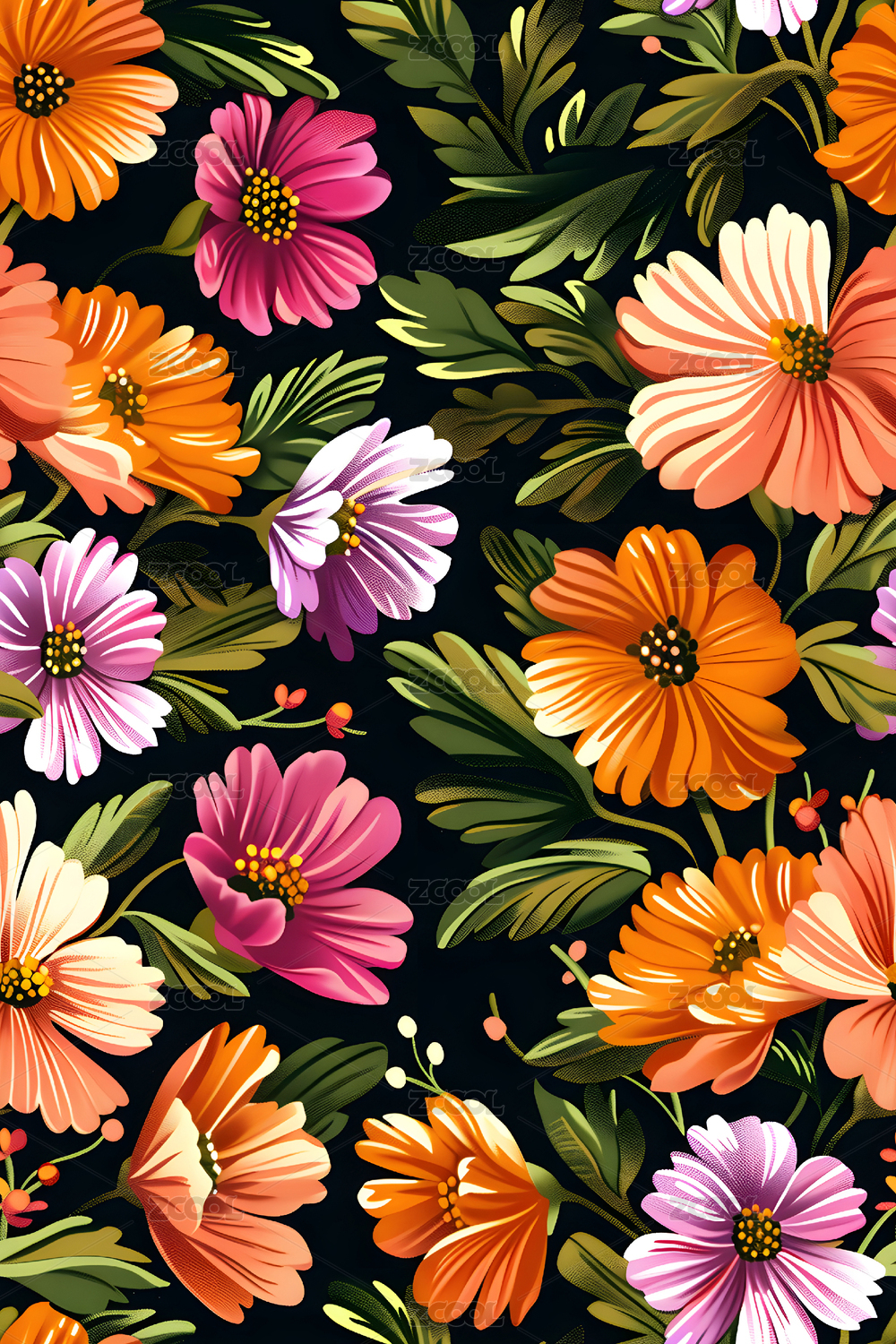 田野,花,叶子,图案,植物,花卉,水彩,复古,自然,图形