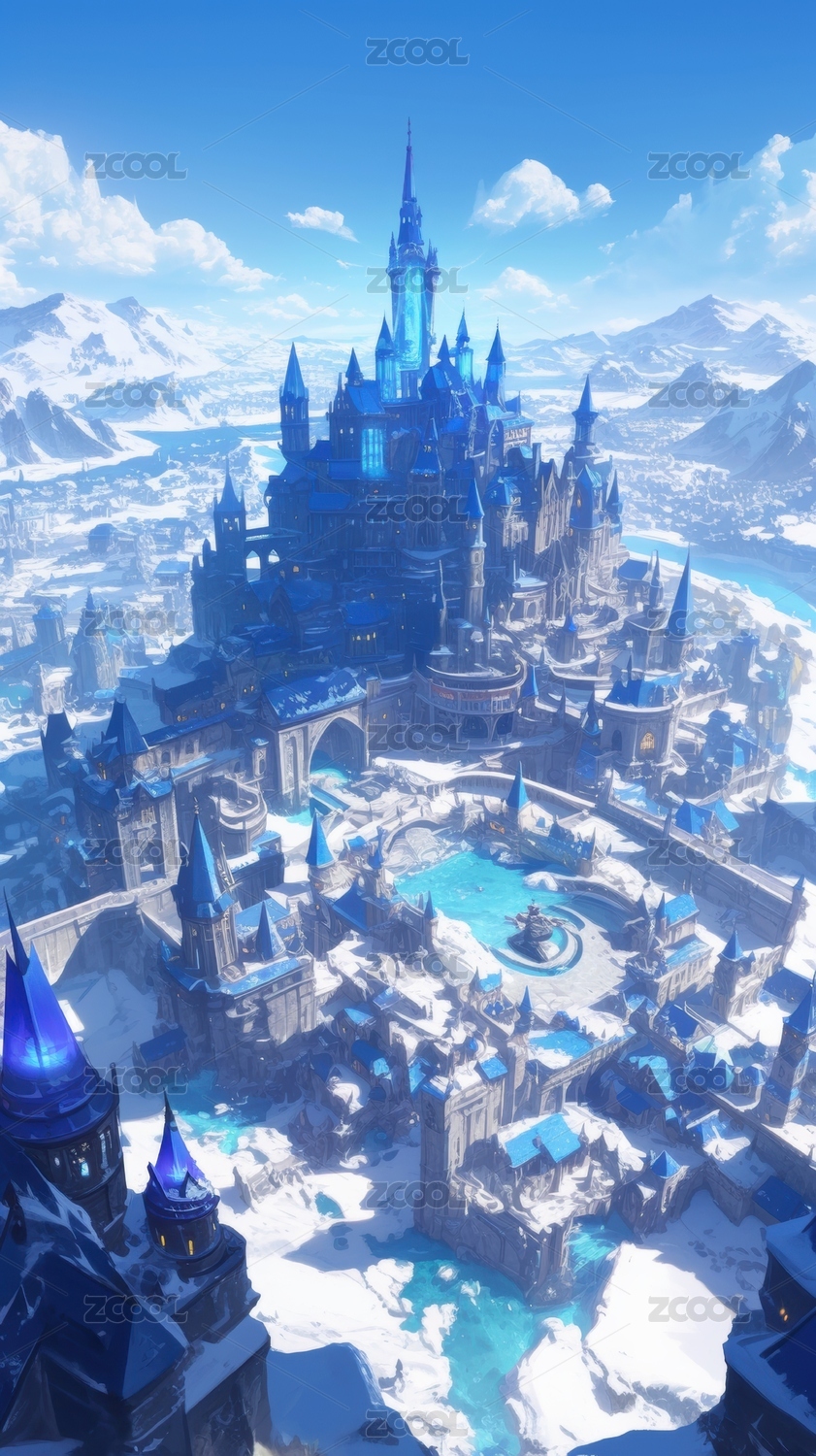 城堡建筑卡通漫画二次元梦幻唯美创意设计艺